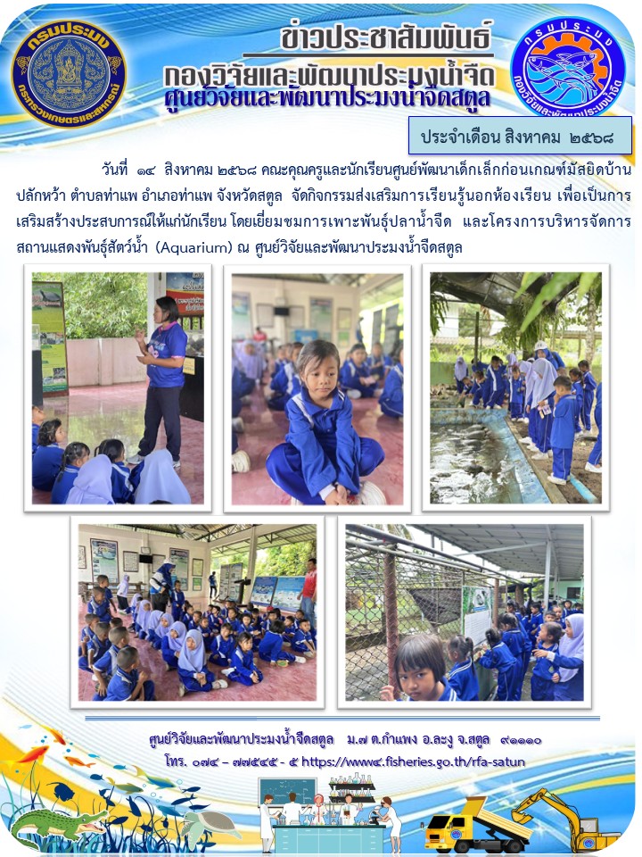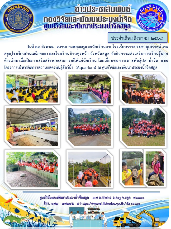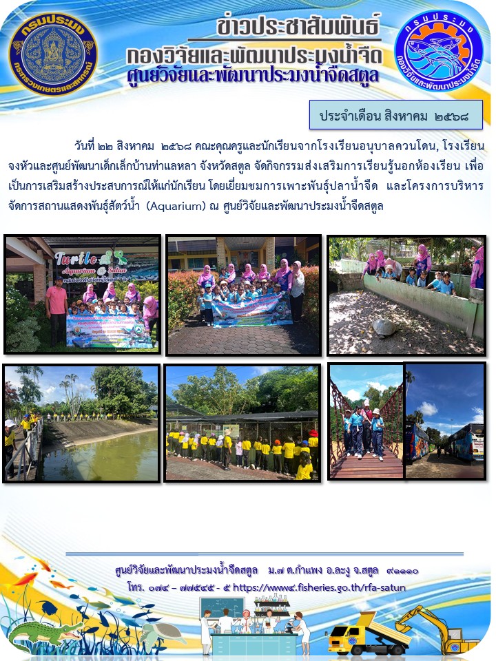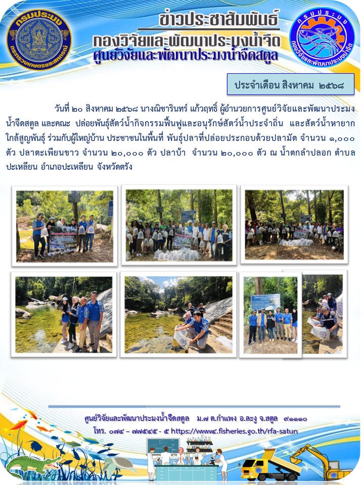 รวบรวมข่าวประชาสัมพันธ์ ศูนย์วิจัยและพัฒนาประมงน้ำจืดสตูล