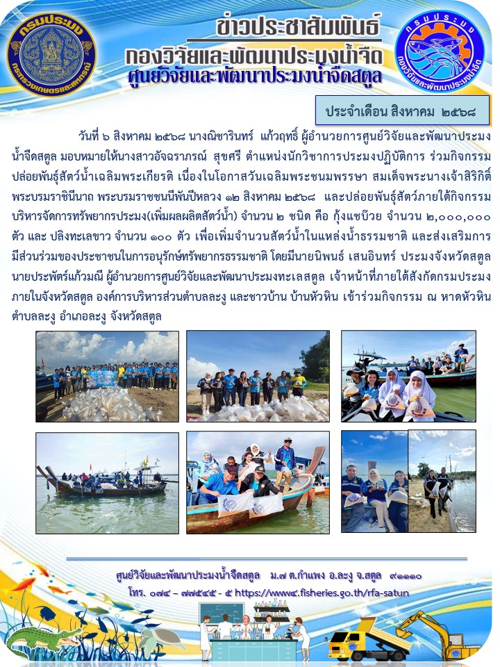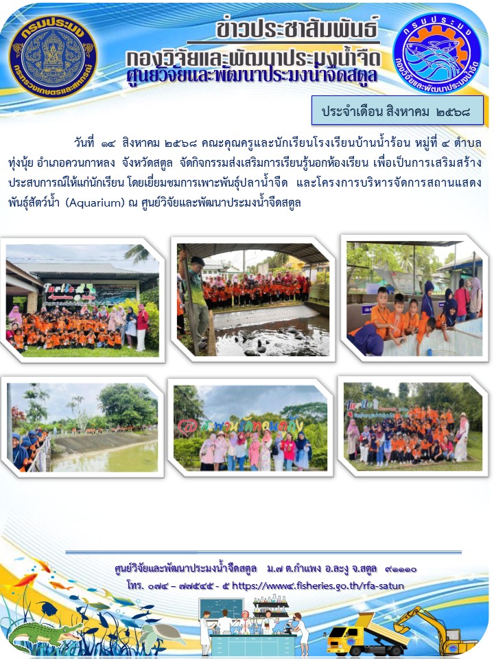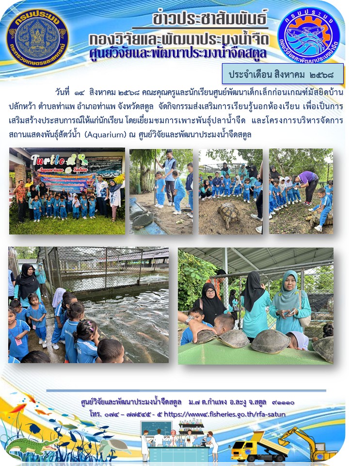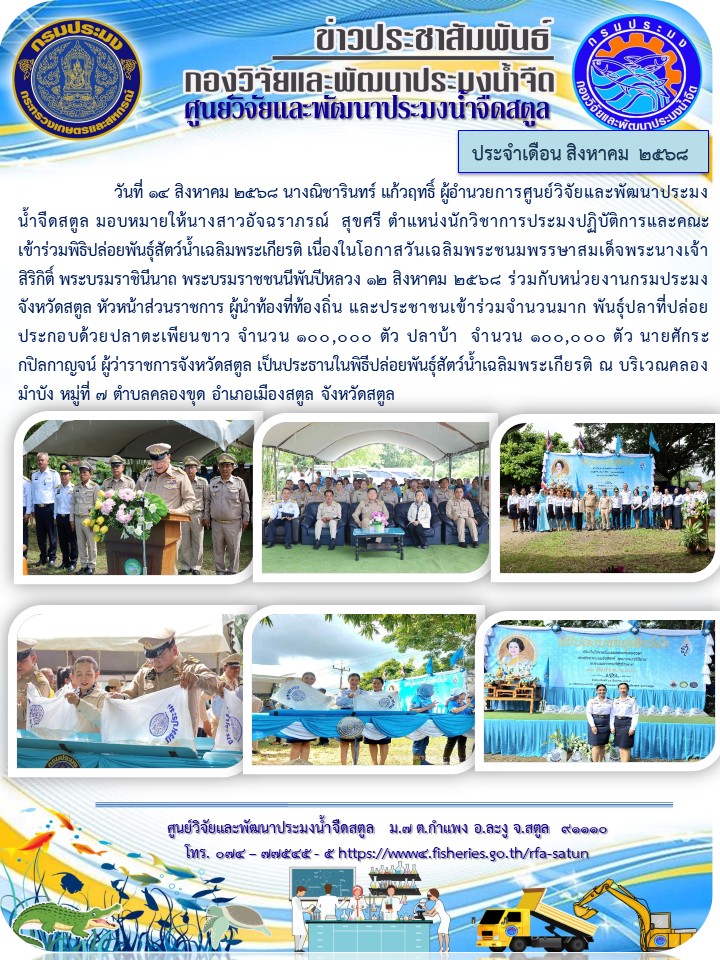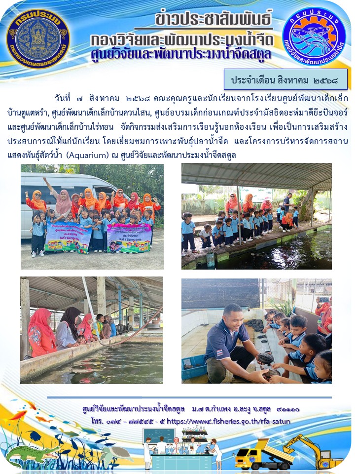 รวบรวมข่าวประชาสัมพันธ์ ศูนย์วิจัยและพัฒนาประมงน้ำจืดสตูล