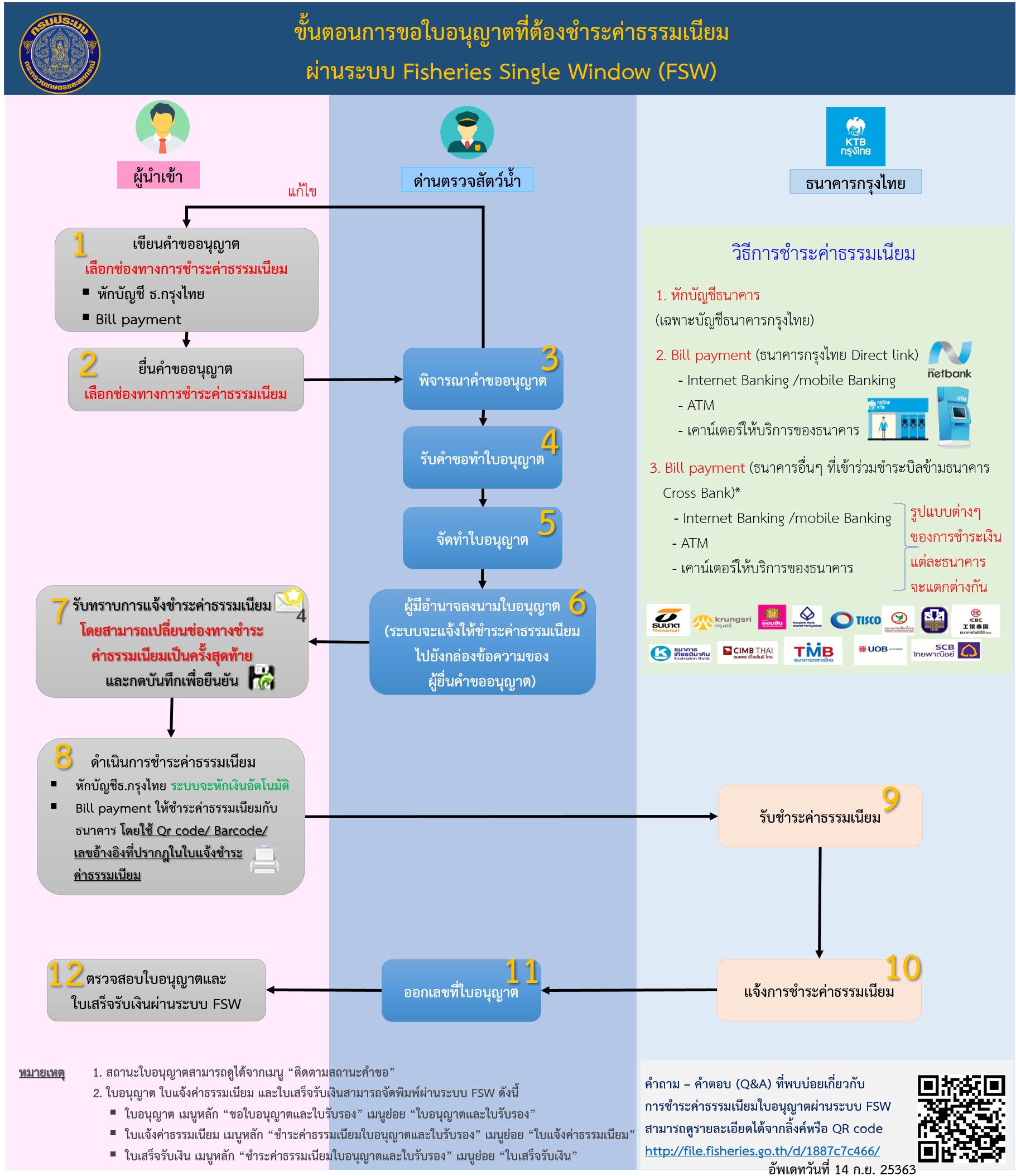 6. ประกาศกรมประมง เรื่อง เปิดให้บริการระบบชำระค่าธรรมเนียมในการออกใบอนุญาตผ่านระบบธนาคาร(e-Payment) ในระบบ Fisheries Single Window (FSW)