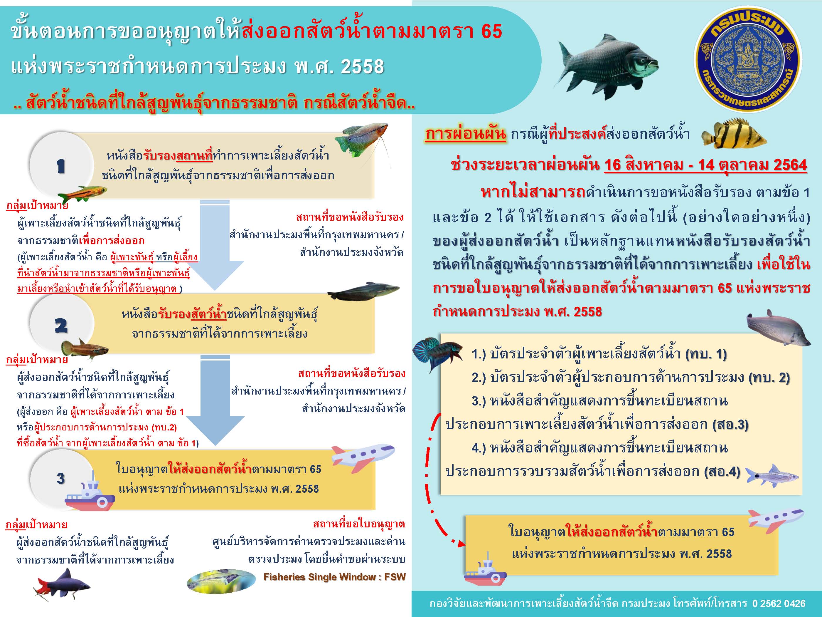 ขั้นตอนการขออนุญาตให้ ส่งออกสัตว์น้ำ ตามมาตรา 65 แห่งพระราชกำหนดการประมง พ.ศ.2558