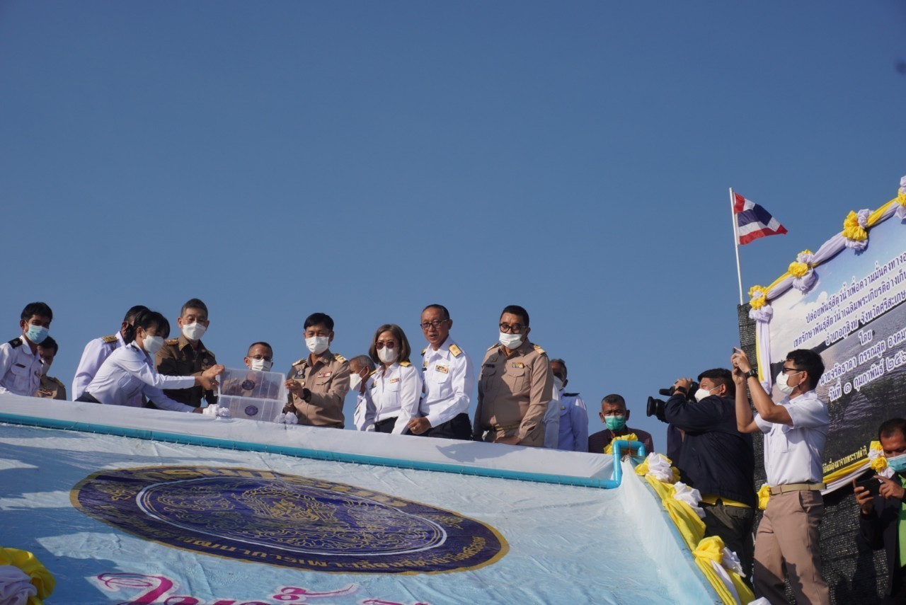 โดยมี นางสาวศิราณี งอยจันทร์ศรี ผอ.ศพจ.ศรีสะเกษ กล่าวรายงานผลการดำเนินงาน รวมทั้งร่วมปล่อยพันธุ์สัตว์น้ำ ณ อ่างเก็บน้ำตึ้กชู ได้แก่ ปลากาดำ กระแห สร้อยขาว ตะเพียนขาว รวม 100,000 ตัว และมอบพันธุ์ปลาตะเพียนให้ผู้ใช้น้ำ 5 ราย รายละ 2000 ตัว