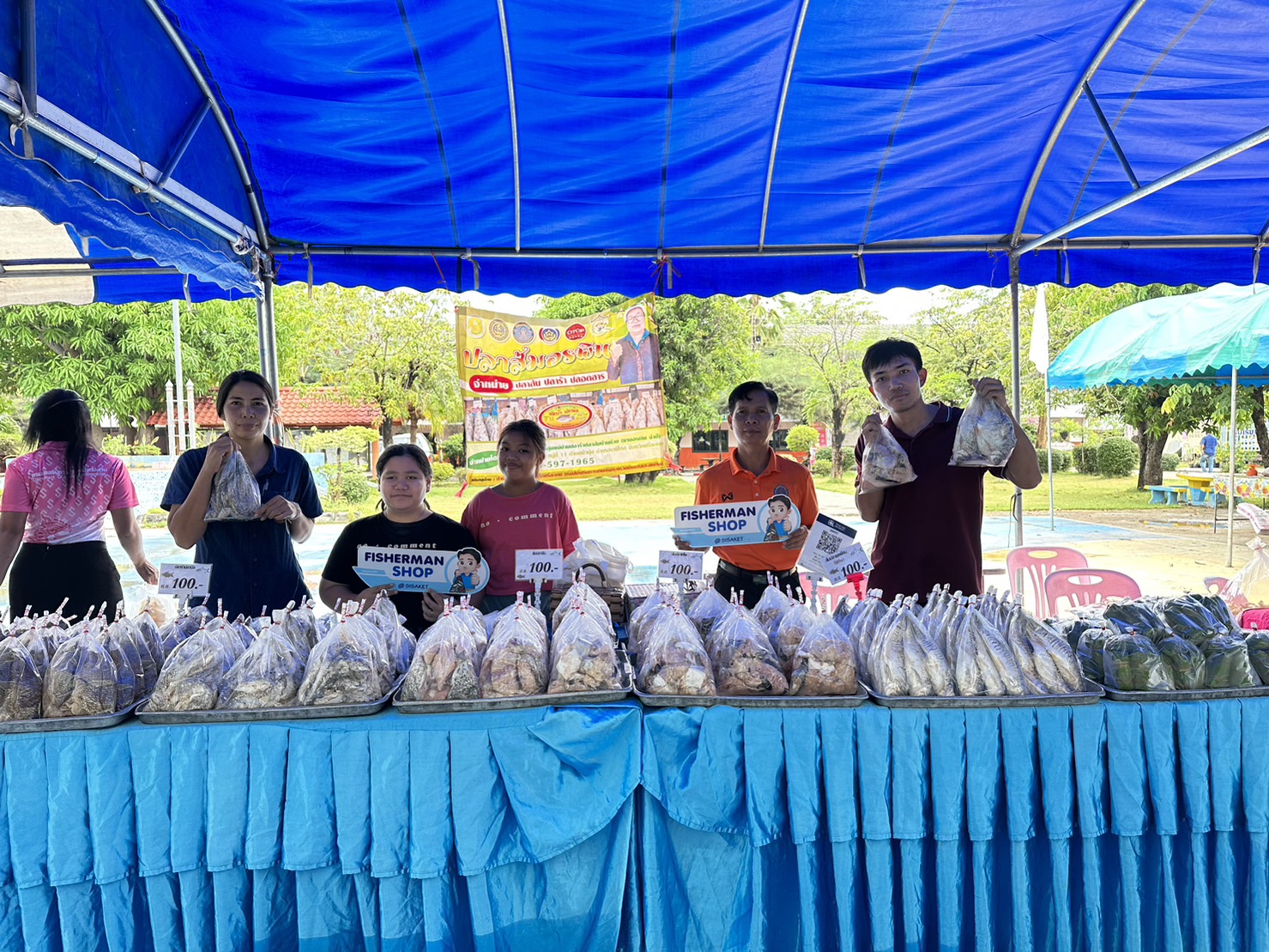 สำนักงานประมงจังหวัดศรีสะเกษ โดย นายกิตติพงษ์ ลีลาศสง่างาม ประมงจังหวัดศรีสะเกษ นายสมหมาย โกศล ประมงอำเภอกันทรลักษ์ นางสาววาสนา ยุภา ประมงอำเภออุทุมพรพิสัย และเจ้าหน้าที่สำนักงานประมง ร่วมกับเจ้าหน้าที่ศูนย์วิจัยและพัฒนาการเพาะเลี้ยงสัตว์น้ำจืดศรีสะเกษ ออกหน่วยโครงการคลินิกเกษตรเคลื่อนที่ในพระราชานุเคราะห์ สมเด็จพระบรมโอรสาธิราชฯ สยามมกุฎราชกุมาร ให้บริการประชาชน แจกเอกสารวิชาการ สนับสนุนพันธุ์ปลาและพันธุ์แหนแดง พร้อมให้ความรู้ คำแนะนำการเลี้ยง เพื่อเป็นอาหารลดต้นทุนในการเลี้ยงสัตว์น้ำ และได้จัดกิจกรรม Fisherman Market@Sisaket  เพื่อเพิ่มรายได้ให้กลุ่มเกษตรกรแปรรูปสัตว์น้ำ โดยมี นายสำรวย เกษกุล ผู้ว่าราชการจังหวัดศรีสะเกษ เป็นประธาน ณ หอประชุมโรงเรียนไตรมิตร ตำบลเสียว อำเภอโพธิ์ศรีสุวรรณ จังหวัดศรีสะเกษ