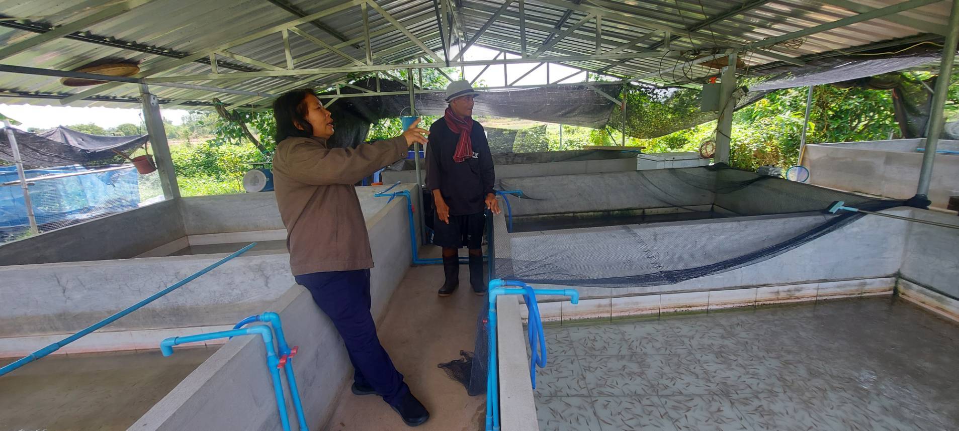 สำนักงานประมงจังหวัดศรีสะเกษ โดย นางเสาวณี แสนโคก ประมงอำเภอเมืองศรีสะเกษติดตามตรวจเยี่ยมและให้คำแนะนำเกษตรกรผู้เพาะเลี้ยงน้ำในพื้นที่ตำบลโพนข่า อำเภอเมือง จังหวัดศรีสะเกษ