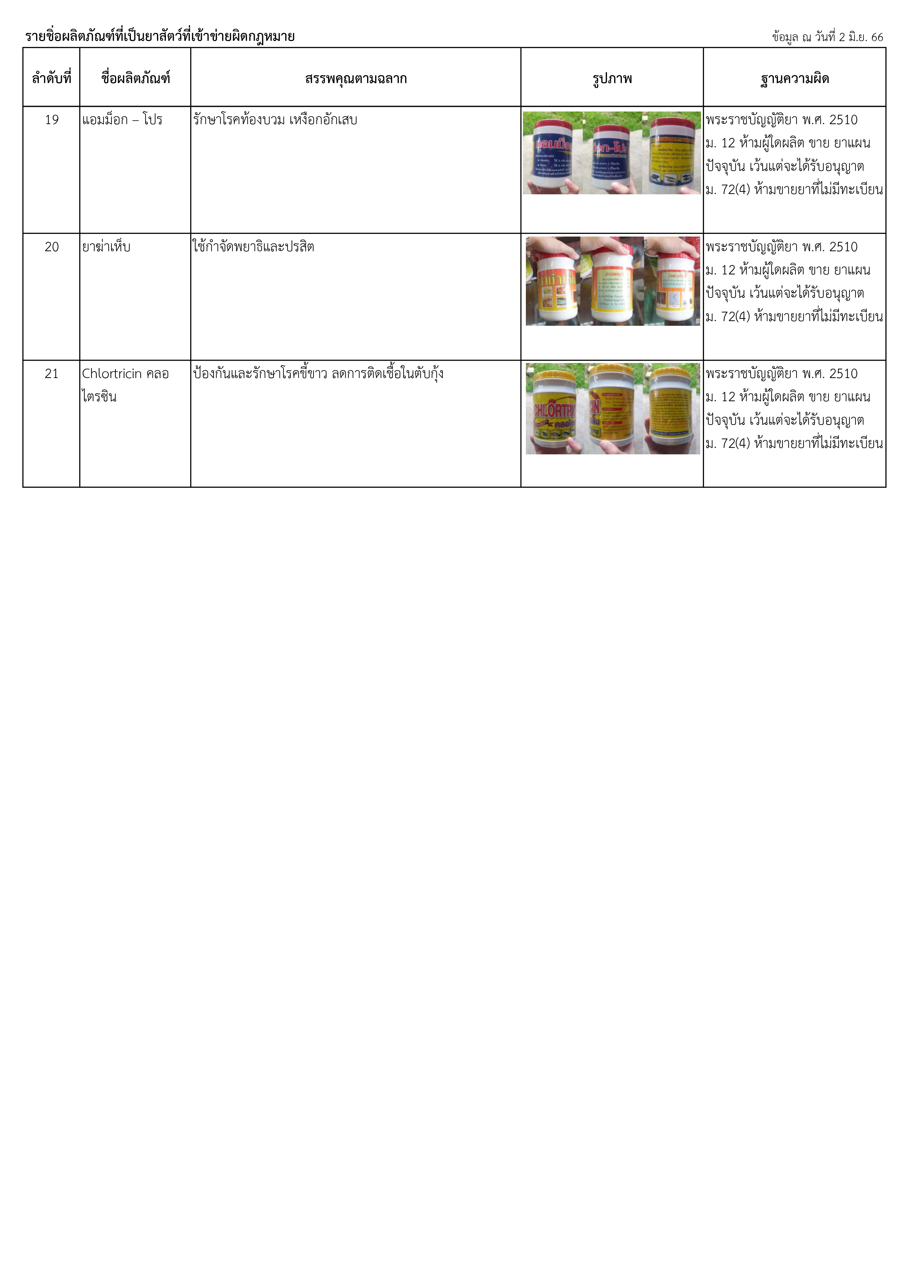 ประชาสัมพันธ์แจ้งเตือนผลิตภัณฑ์ที่เข้าข่ายผิดกฎหมาย