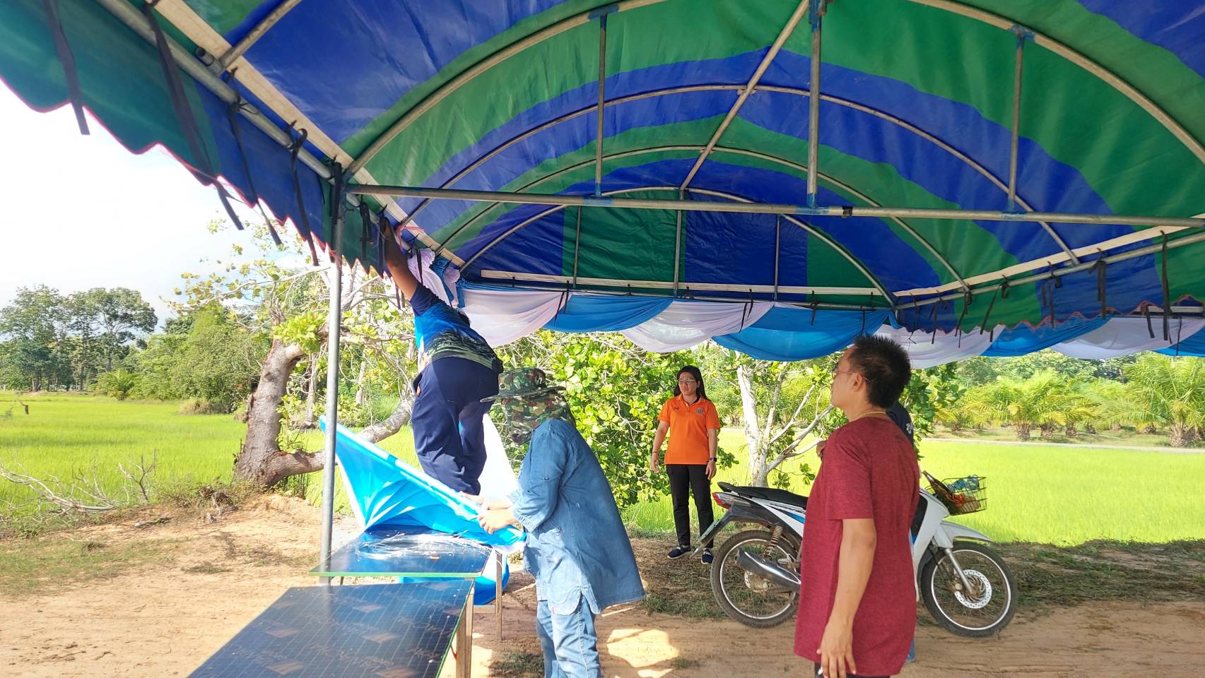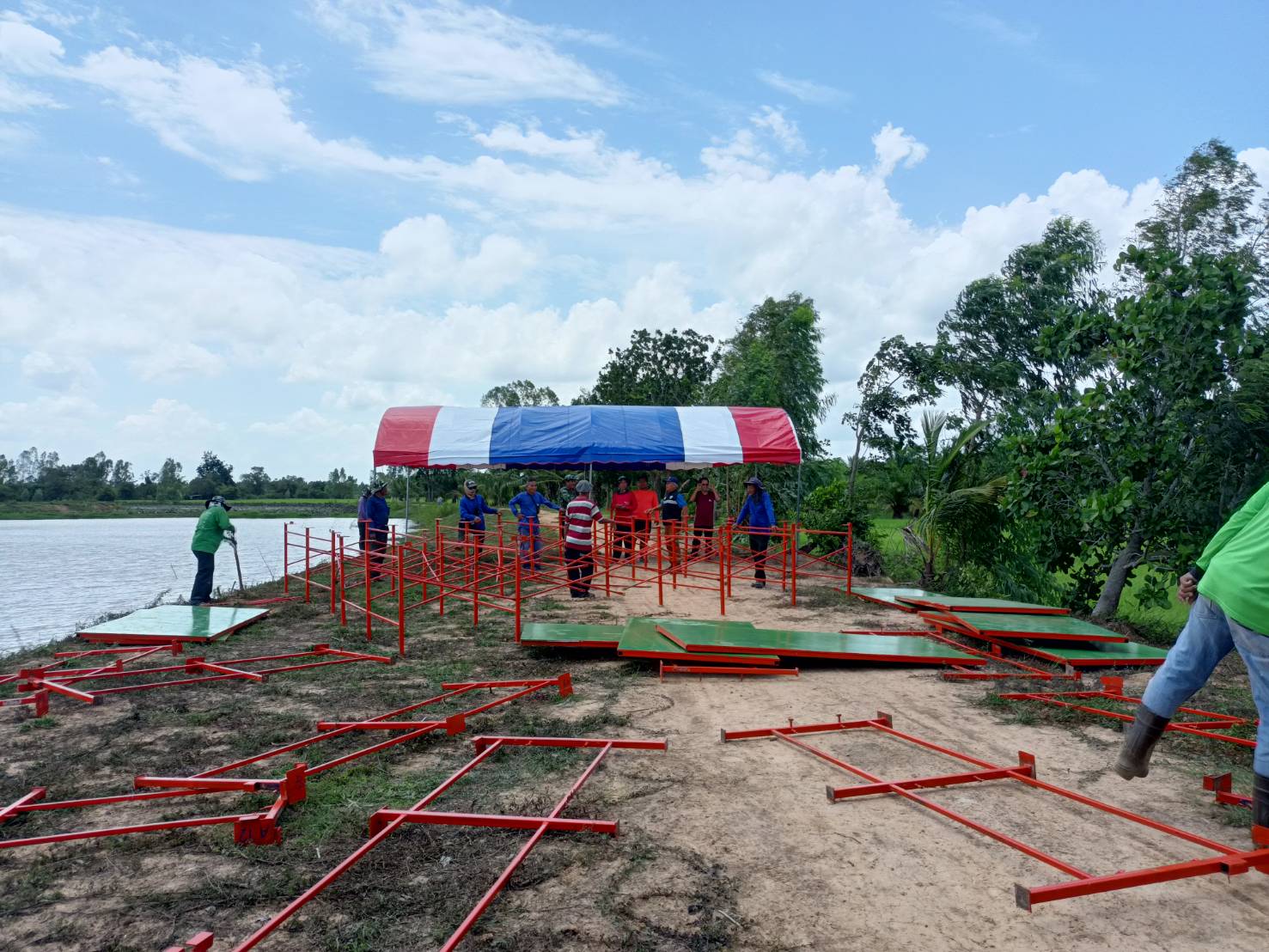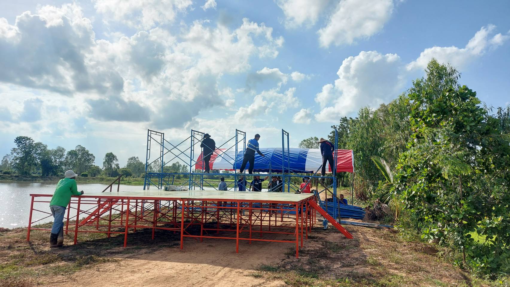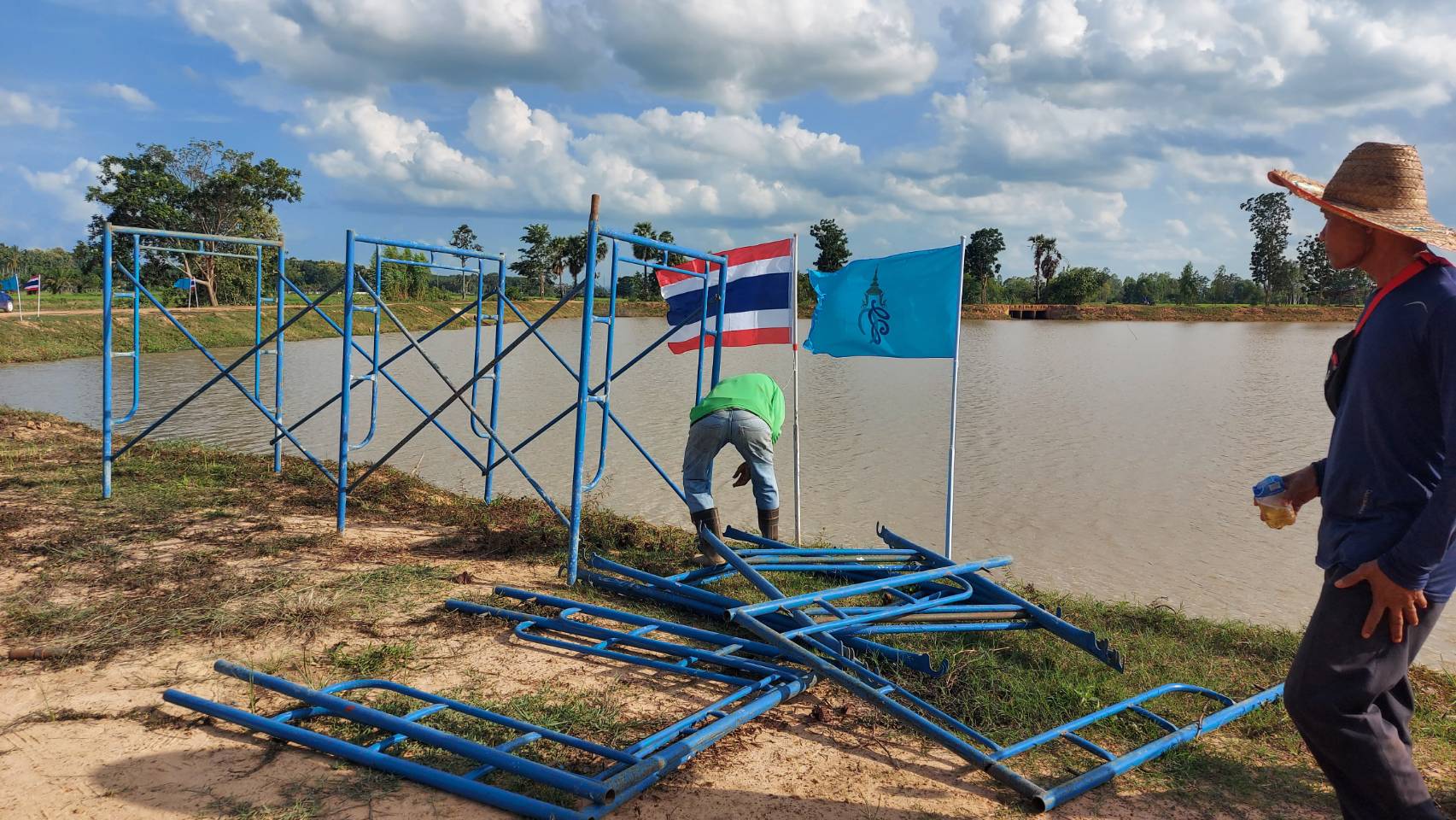 เตรียมงานจัดสถานที่ในการจัดพิธีปล่อยพันธุ์สัตว์น้ำ