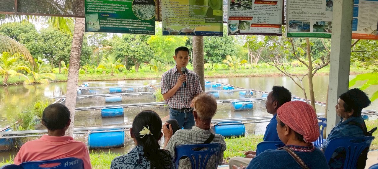 ในการนี้ นายยุทธจิตร พวงอินทร์ ประมงอำเภอขุขันธ์ และ นายจารุวงศ์ พวงอินทร์ ประมงอำเภอภูสิงห์ ได้เข้าร่วมเป็นวิทยากร บรรยายให้ความรู้เกี่ยวกับการเลี้ยงสัตว์น้ำเบื้องต้น พร้อมทั้งสาธิตการสร้างอาหารธรรมชาติสำหรับสัตว์น้ำ แก่เกษตรกรผู้เข้าร่วมโครงการ