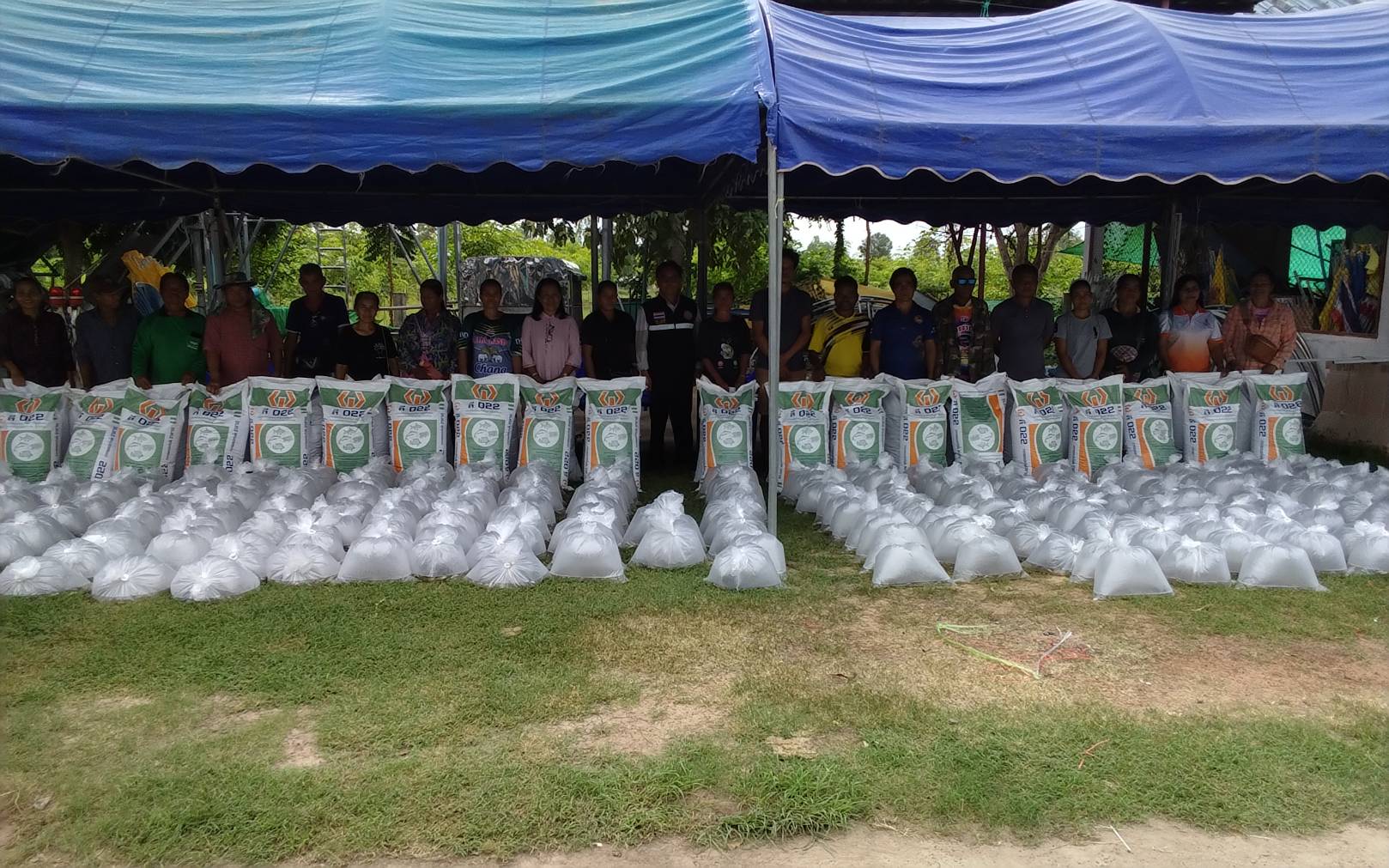 มอบปัจจัยการผลิตแก่เกษตรกร โครงการพัฒนาอาชีพเพาะเลี้ยงปลาตะเพียนขาวในบ่อดินอำเภอน้ำเกลี้ยง