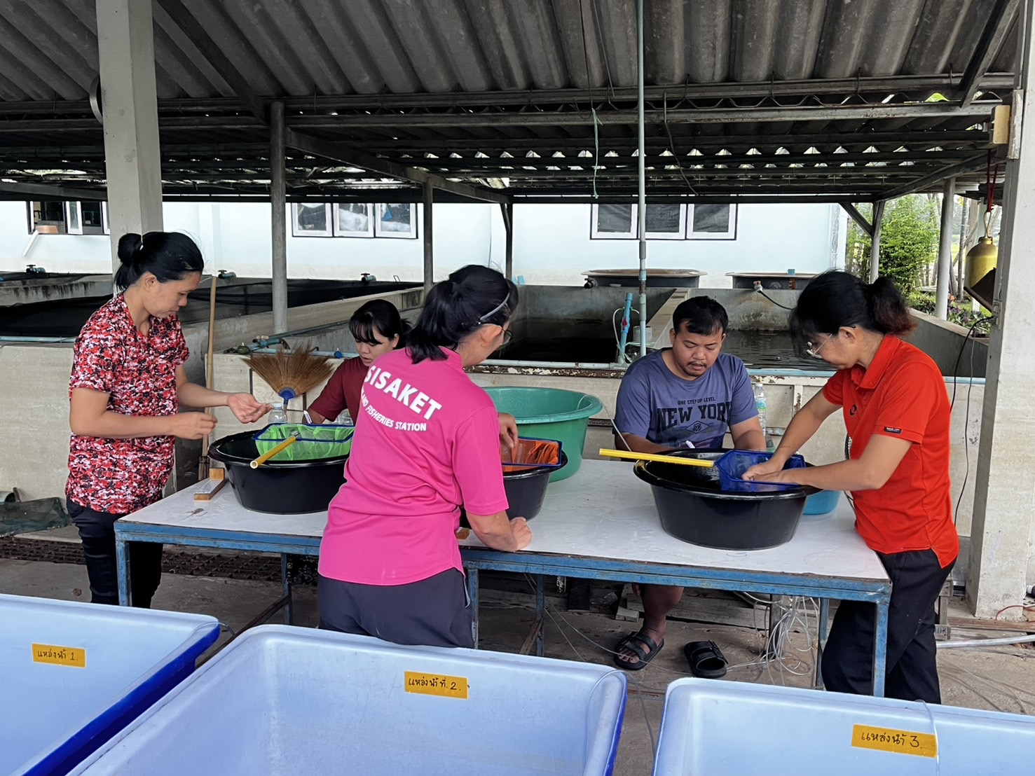 วันจันทร์ที่ 7 สิงหาคม 2568 สำนักงานประมงจังหวัดศรีสะเกษ โดยนายอิสระ สุวิทยาภรณ์ ประมงจังหวัดศรีสะเกษ พร้อมด้วยนายประจักษ์ แสนภักดี หัวหน้ากลุ่มบริหารจัดการด้านการประมง นางเสาวณี แสนโคก ประมงอำเภอเมืองศรีสะเกษ นายสุพรชัย พนารัตนะโสภณ ประมงอำเภออุทุมพรพิสัย และเจ้าหน้าที่สำนักงานฯ ร่วมกับคณะกรรมการตรวจรับฯ ศูนย์วิจัยและพัฒนาการเพาะเลี้ยงสัตว์น้ำจืดศรีสะเกษ ดำเนินการตรวจรับกุ้งก้ามกราม ตามโครงการบริหารจัดการทรัพยากรประมง กิจกรรมบริหารจัดการทรัพยากรประมงน้ำจืด การเพิ่มผลผลิตสัตว์น้ำในแหล่งน้ำชุมชน เพื่อเพิ่มรายได้และลดค่าครองชีพของประชาชน ประจำปีงบประมาณ 2568 จำนวน 3 แหล่งน้ำ