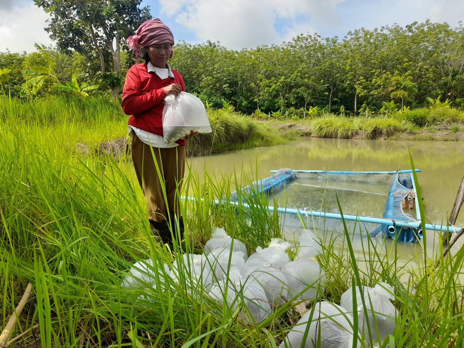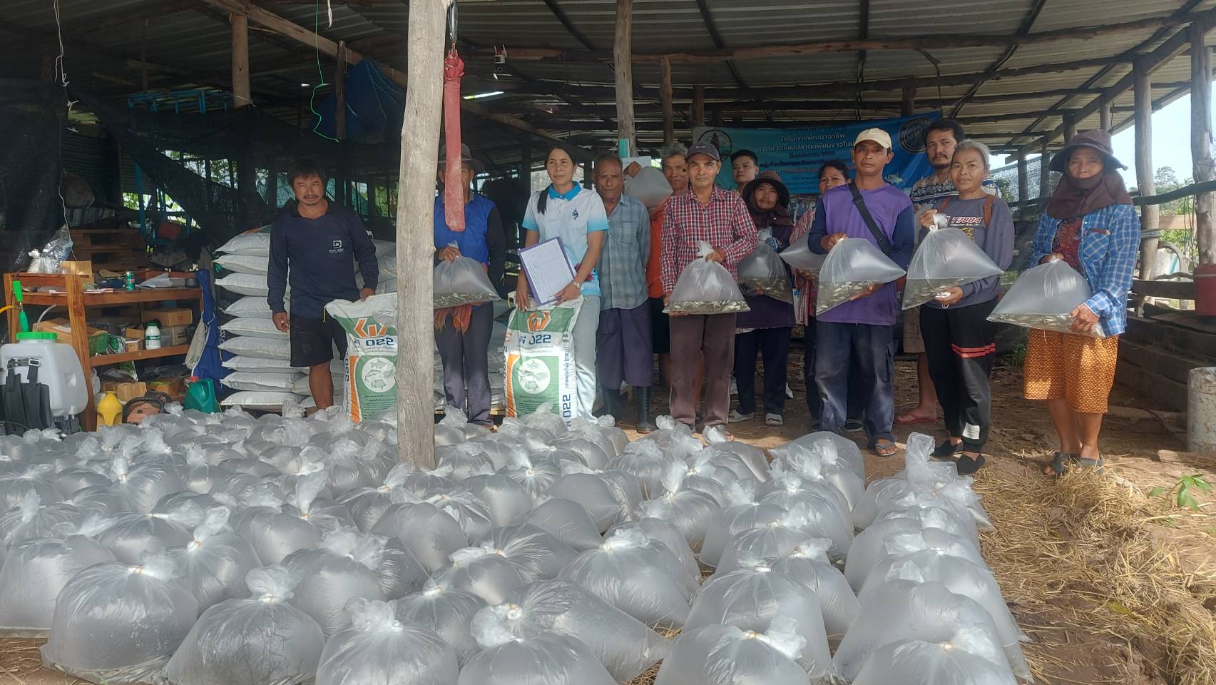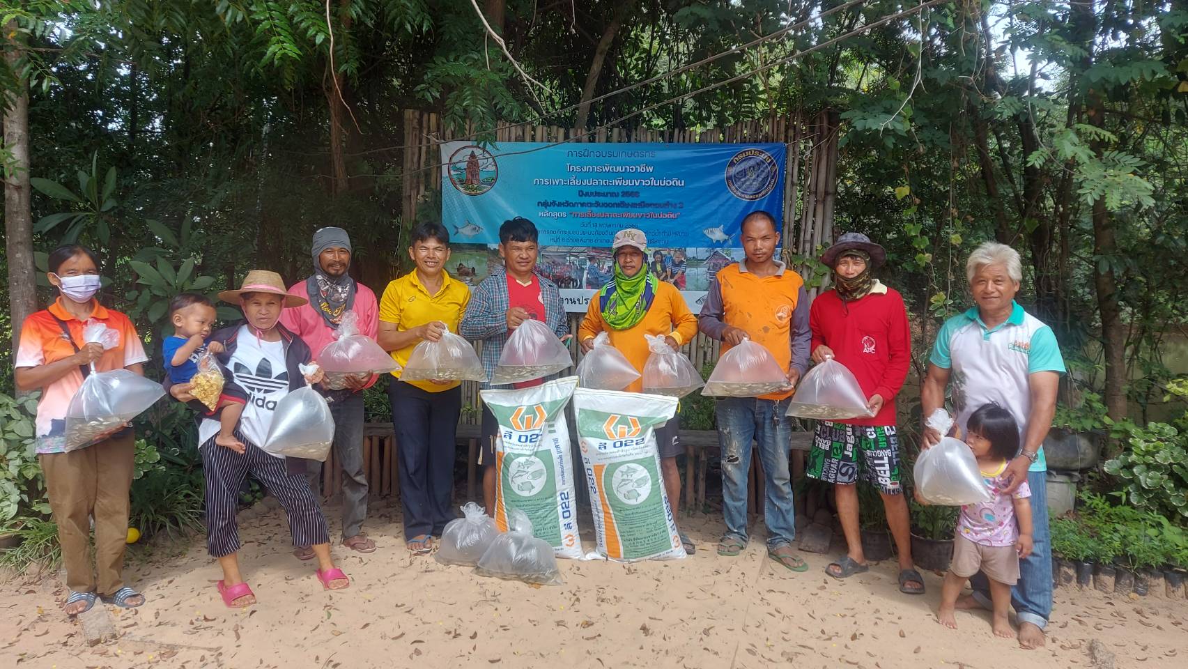 มอบปัจจัยการผลิตแก่เกษตรกร โครงการพัฒนาอาชีพเพาะเลี้ยงปลาตะเพียนขาวในบ่อดินอำเภอปรางค์กู่