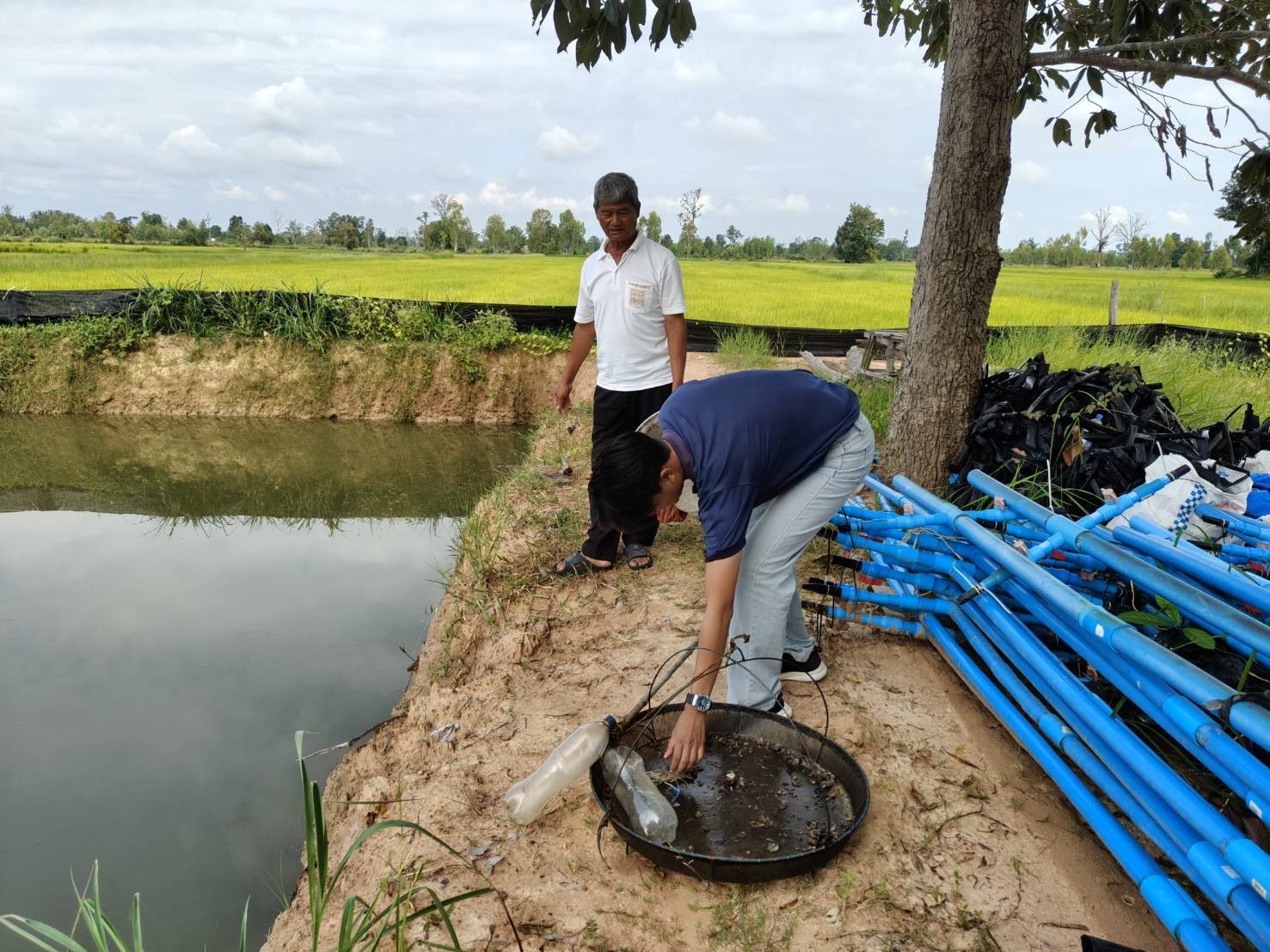 วันที่ 20 สิงหาคม 2568 นายจารุวงศ์ พวงอินทร์ ประมงอำเภอภูสิงห์ ลงพื้นที่เยี่ยมเยียน ติดตาม รายนายพัน ขาวสะอาด ซึ่งเป็น ศพก.เครือข่ายด้านประมง ปี 2560 ณ บ้านจอก หมู่ 4 ตำบลห้วยตึ๊กชู อำเภอภูสิงห์จังหวัดศรีสะเกษ ที่ได้ดำเนินการทดลองเลี้ยงกุ้งก้ามกาม พร้อมนี้ได้สนับสนุนหัวเชื้อจุลินทรีย์ (ปม.1) ซึ่งเป็นผลิตภัณฑ์ของกรมประมง ที่จะช่วยใช้ในการปรับสภาพน้ำในบ่อเลี้ยงสัตว์น้ำ ให้กับเกษตรกรรายดังกล่าว