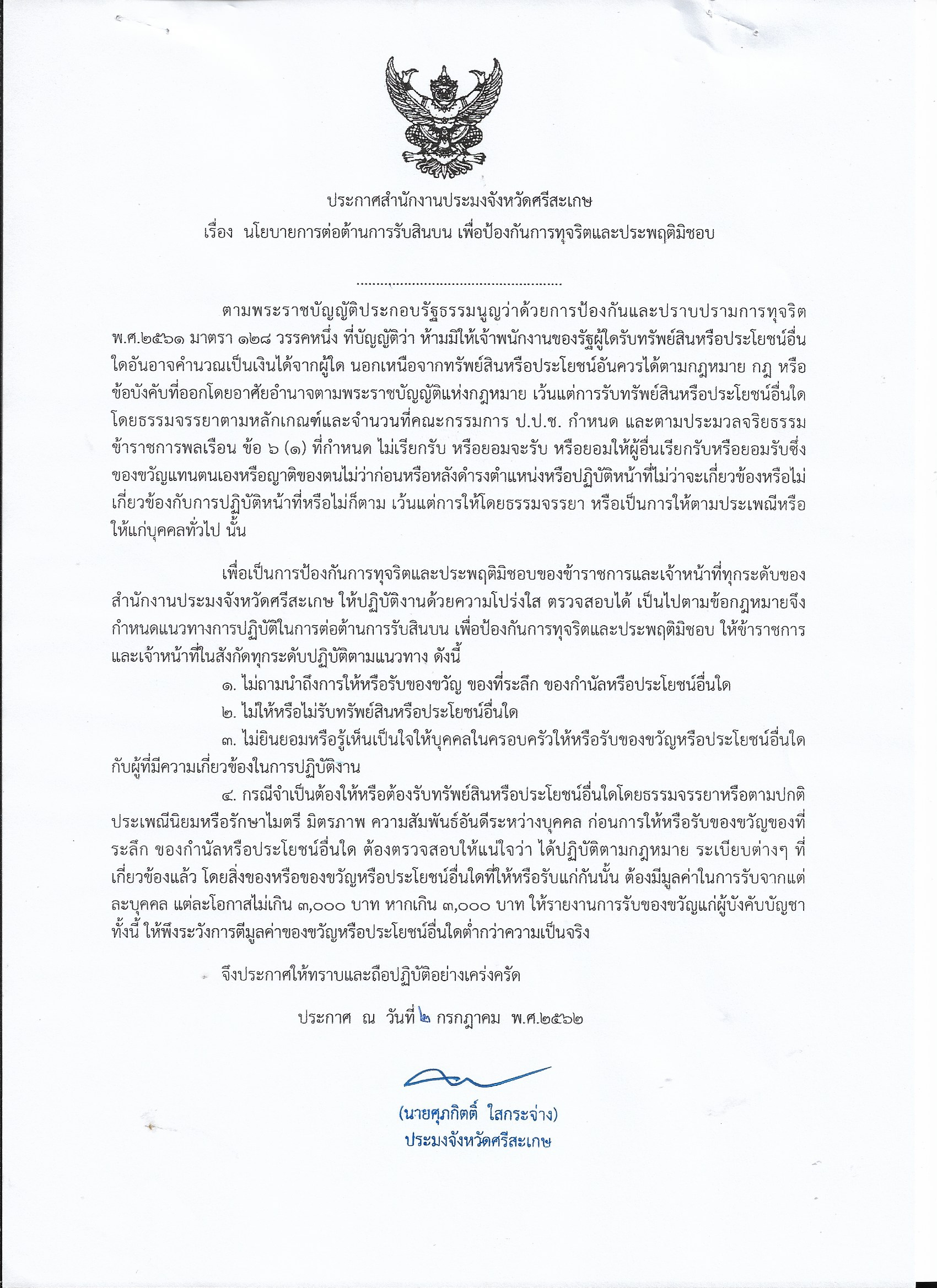 มาตรการส่งเสริมคุณธรรมและความโปร่งใสภายในหน่วยงาน
