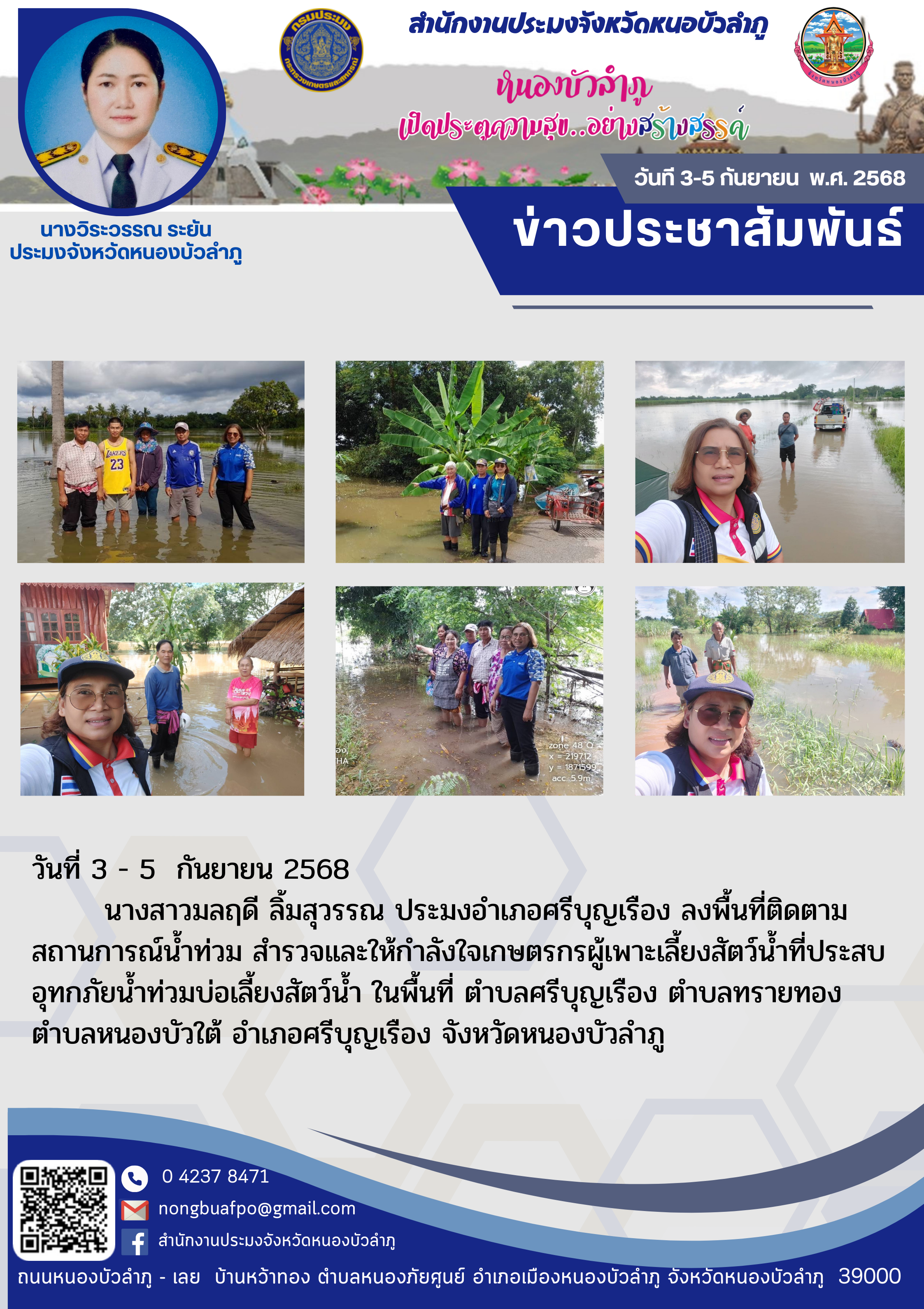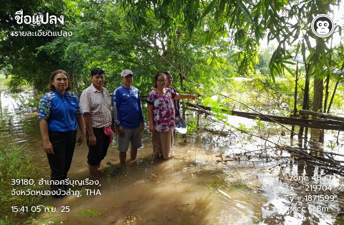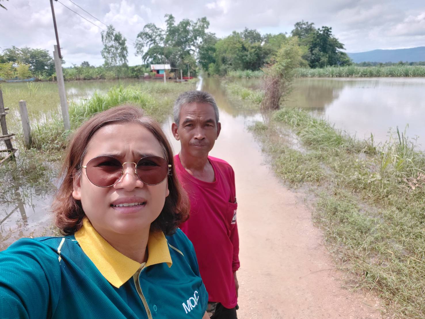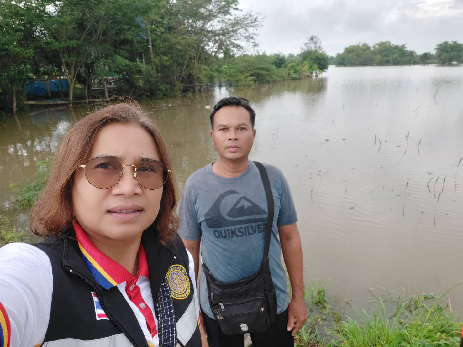 นางสาวมลฤดี ลิ้มสุวรรณ ประมงอำเภอศรีบุญเรือง ลงพื้นที่ติดตามสถานการณ์น้ำท่วม สำรวจและให้กำลังใจเกษตรกรผู้เพาะเลี้ยงสัตว์น้ำที่ประสบอุทกภัยน้ำท่วมบ่อเลี้ยงสัตว์น้ำ ในพื้นที่ ตำบลศรีบุญเรือง ตำบลทรายทอง ตำบลหนองบัวใต้ อำเภอศรีบุญเรือง จังหวัดหนองบัวลำภู