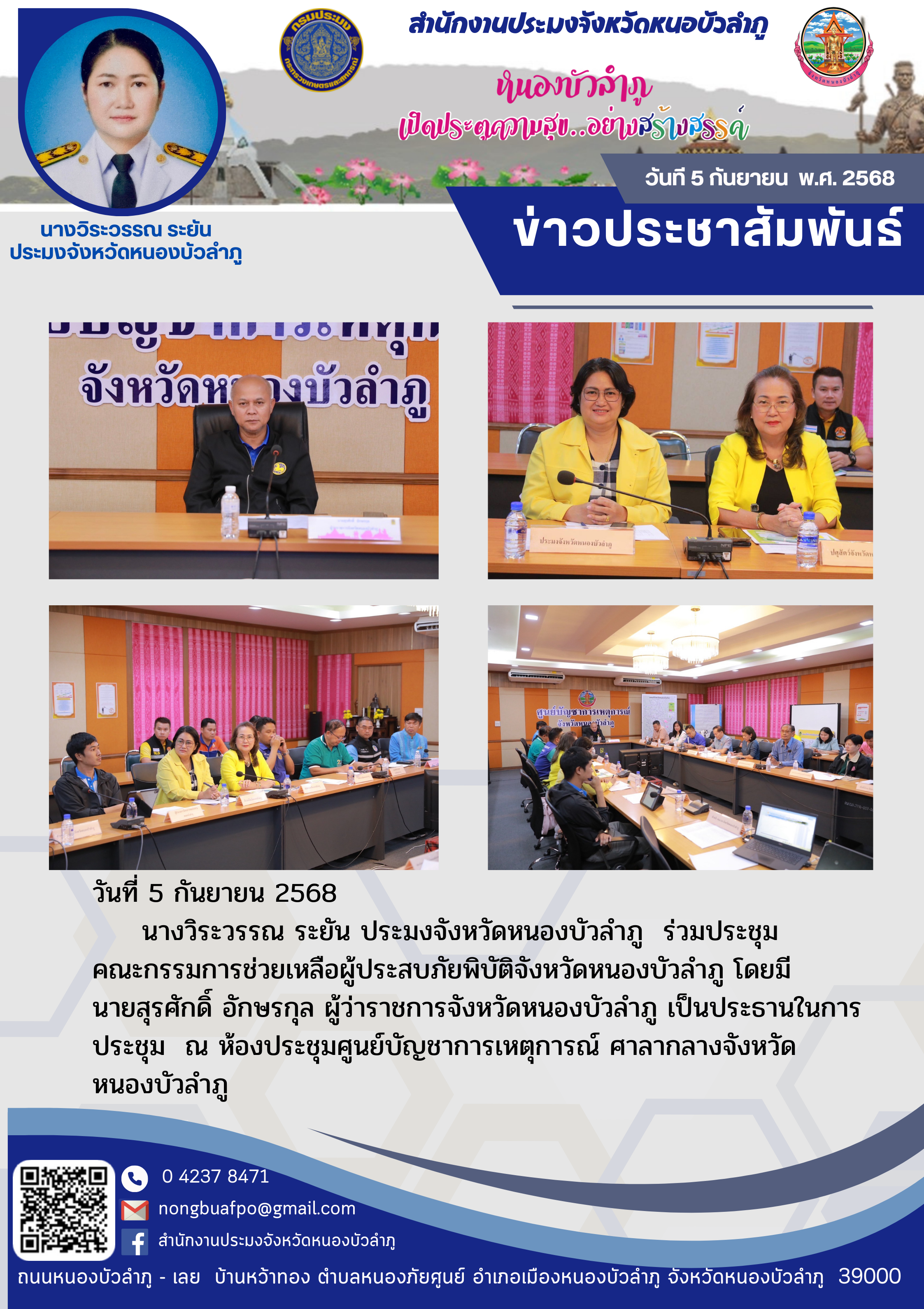 ร่วมประชุมคณะกรรมการช่วยเหลือผู้ประสบภัยพิบัติจังหวัดหนองบัวลำภู
