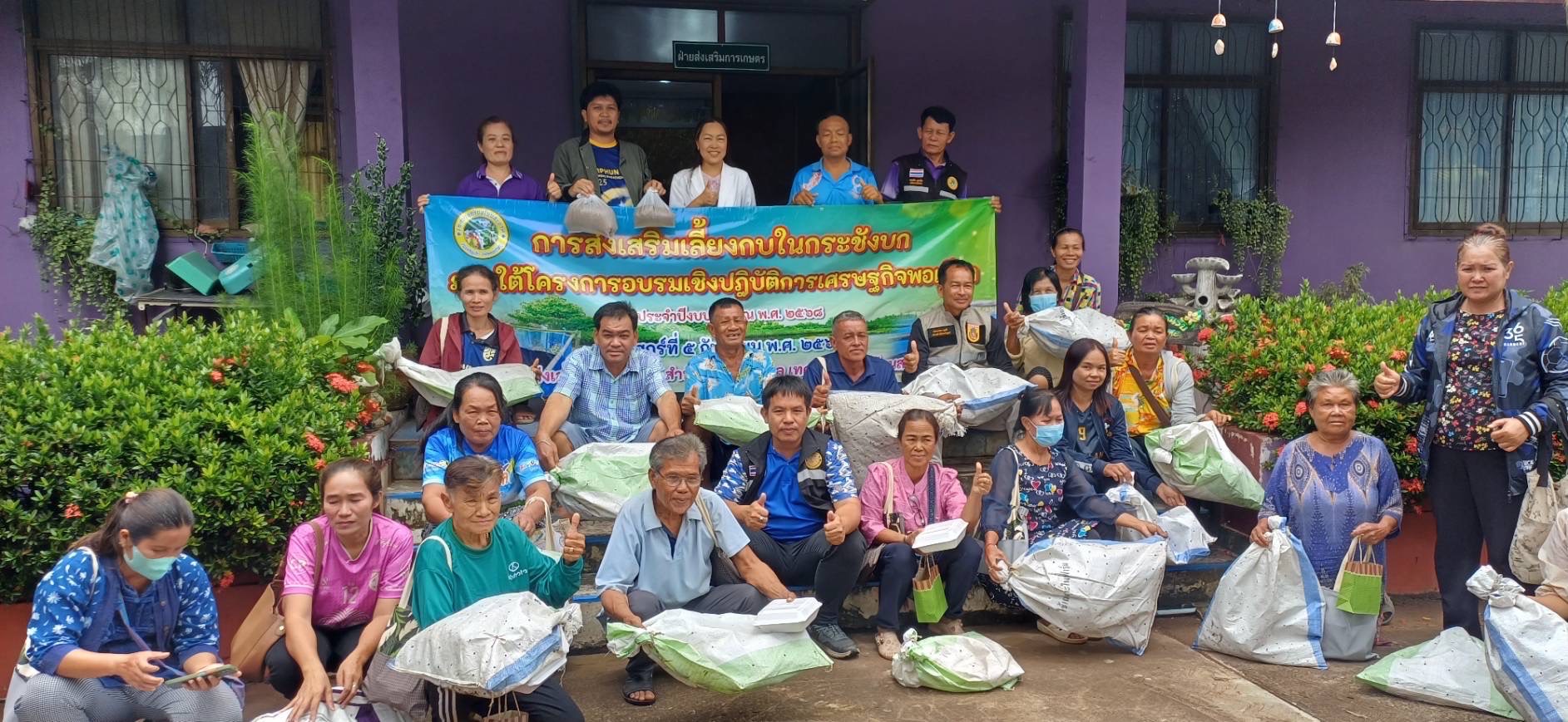 ร่วมเป็นวิทยากรในการฝึกอบรมถ่ายทอดองค์ความรู้การส่งเสริมการเลี้ยงกบในกระชังบก ให้แก่เกษตรกรตามโครงการอบรมเชิงปฏิบัติการเศรษฐกิจพอเพียง