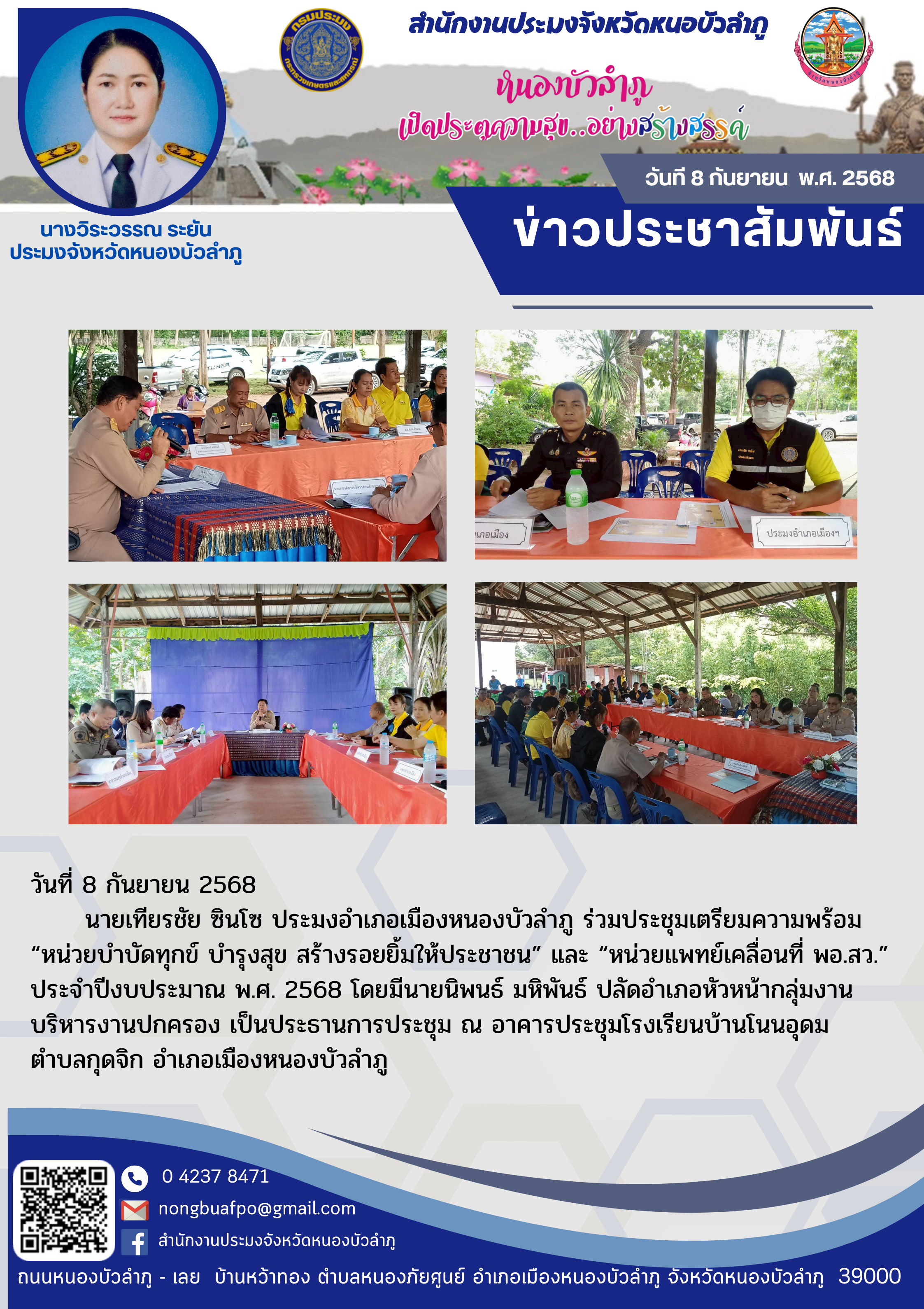 [2025-11-07] ร่วมประชุมประจำเดือน กำนัน ผู้ใหญ่บ้าน อำเภอโนนสัง ครั้งที่ 11/2568 ณ.. [2025-11-07] ปฎิบัติงานคัดเลือกเกษตรกรเข้าร่วมโครงการพัฒนาเกษตรกรรมยั่งยืน กิจกรรมพ.. [2025-11-06] ร่วมโครงการฝึกอบรมเชิงปฏิบัติการเพื่อส่งเสริมสร้างสมรรถนะด้านบัญชีภาค.. [2025-11-05] ร่วมประชุมคณะทำงานขับเคลื่อนการพัฒนาเศรษฐกิจฐานรากและประชารัฐ (E3) จัง.. [2025-11-04] ร่วมจัดรายการวิทยุ "รายการ รอบบ้านเมืองหนองบัว" โดยทำการจัดรายการวิทยุ.. [2025-11-04] ร่วมพิธีทอดกฐินพระราชทาน ประจำปีพุทธศักราช 2568.. [2025-11-04] ร่วมพิธียกยอดฉัตรกางกั้นองค์พระประธานในพระอุโบสถ และพิธีสมโภชองค์พระกฐ.. [2025-11-04] ร่วมปล่อยพันธุ์ปลา เพื่อถวายเป็นพระราชกุศลและสร้างจิตสำนึกในการอนุรักษ.. [2025-11-04] ปฎิบัติงานคัดเลือกเกษตรกรเข้าร่วมโครงการพัฒนาเกษตรกรรมยั่งยืน กิจกรรมพ.. [2025-11-03] ร่วมประชุม หัวหน้าส่วนราชการ หัวหน้าหน่วยงานรัฐวิสาหกิจ ผู้บริหารองค์ก.. อ่านทั้งหมด