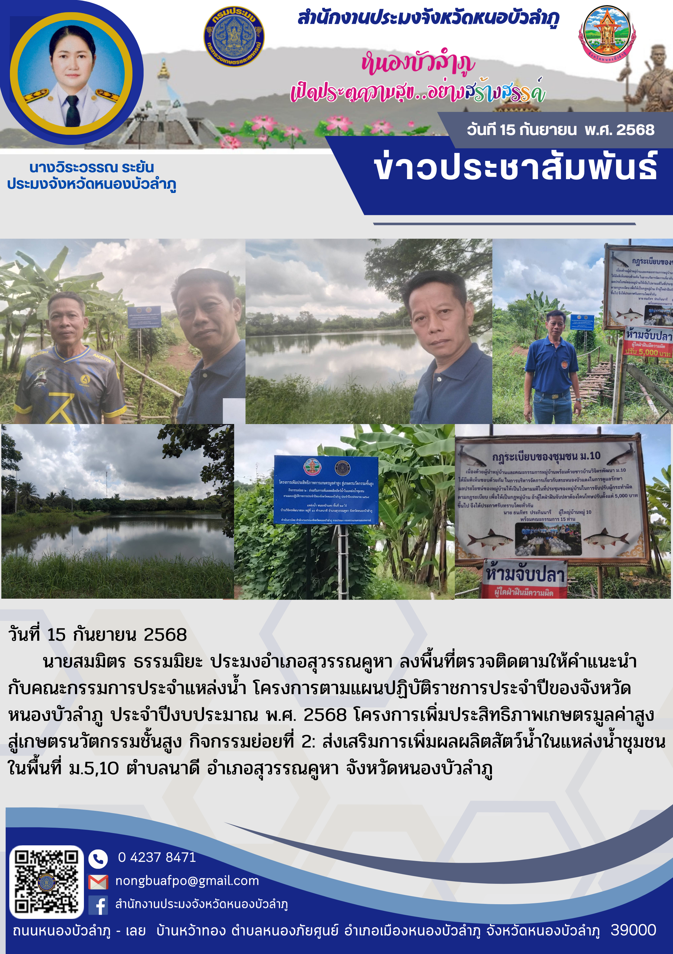 ลงพื้นที่ตรวจติดตามให้คำแนะนำ กับคณะกรรมการประจำแหล่งน้ำ โครงการตามแผนปฏิบัติราชการประจำปีของจังหวัดหนองบัวลำภู ประจำปีงบประมาณ พ.ศ. 2568