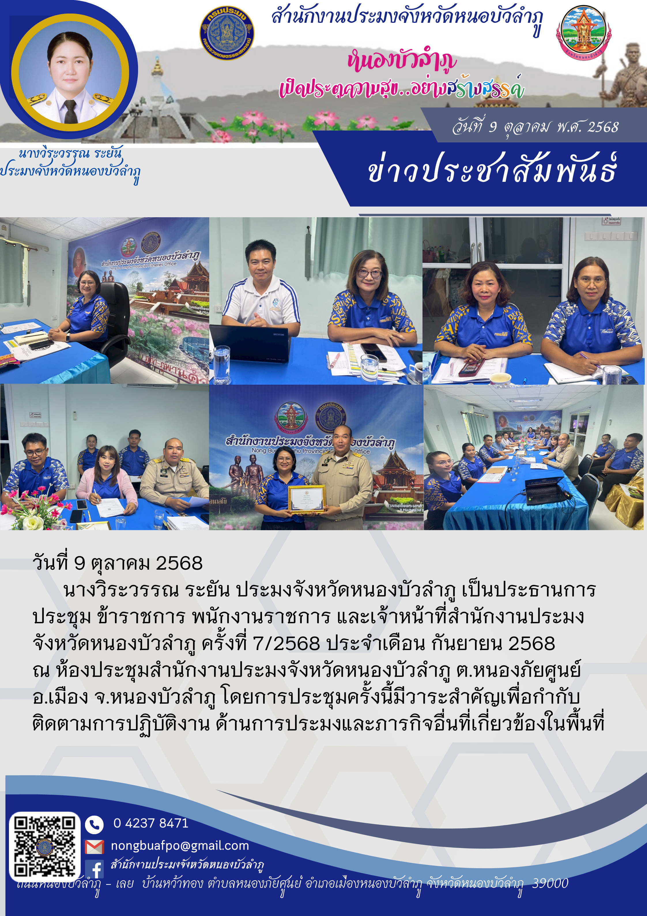 ประชุม ข้าราชการ พนักงานราชการ และเจ้าหน้าที่สำนักงานประมงจังหวัดหนองบัวลำภู ครั้งที่ 7/2568 ประจำเดือน กันยายน 2568