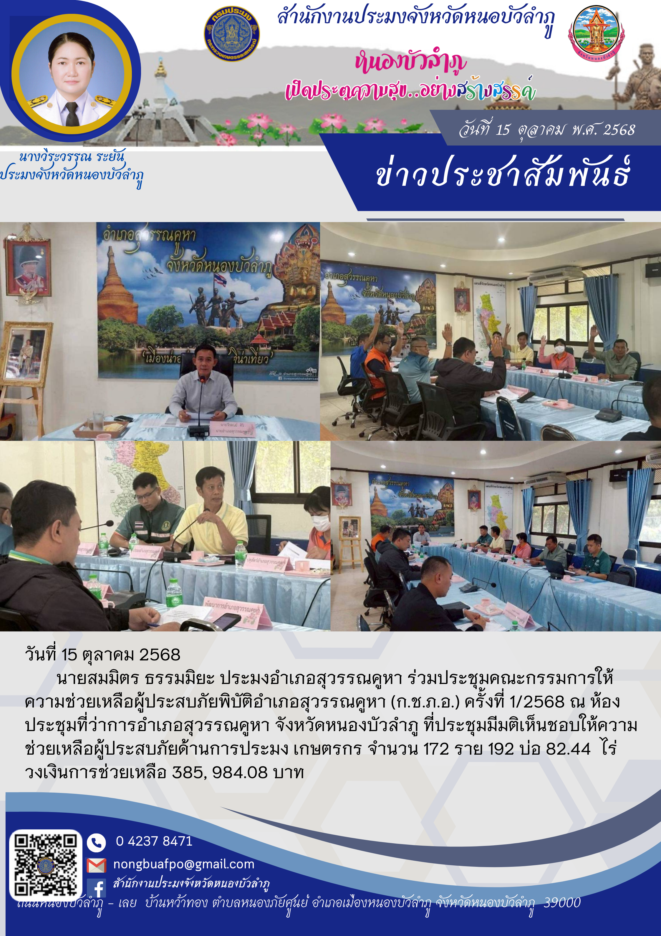 ร่วมประชุมคณะกรรมการให้ความช่วยเหลือผู้ประสบภัยพิบัติอำเภอสุวรรณคูหา (ก.ช.ภ.อ.) ครั้งที่ 1/2568