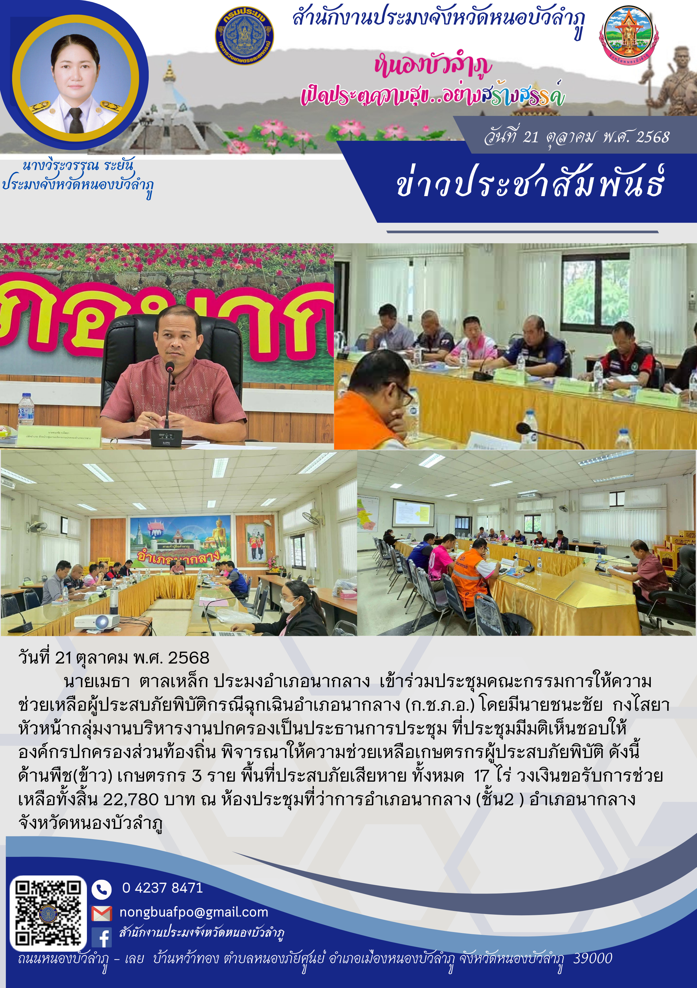 เข้าร่วมประชุมคณะกรรมการให้ความช่วยเหลือผู้ประสบภัยพิบัติกรณีฉุกเฉินอำเภอนากลาง (ก.ช.ภ.อ.)