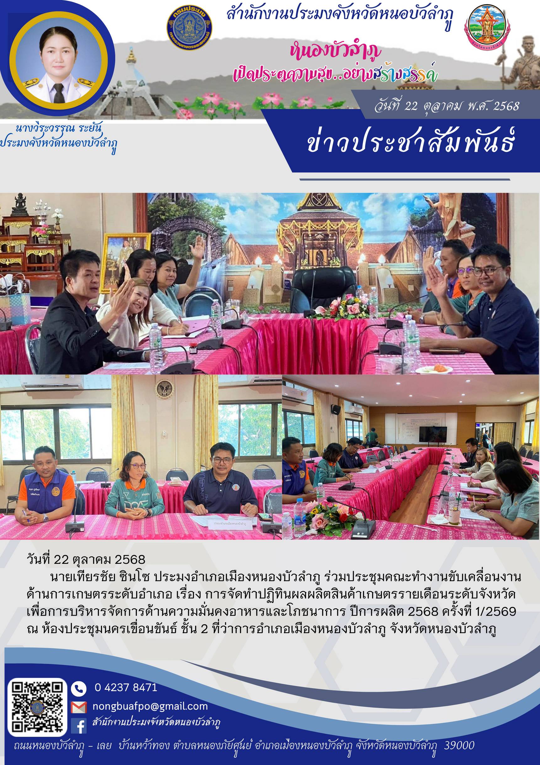 นายเทียรชัย ซินโซ ประมงอำเภอเมืองหนองบัวลำภู ร่วมประชุมคณะทำงานขับเคลื่อนงานด้านการเกษตรระดับอำเภอ เรื่อง การจัดทำปฏิทินผลผลิตสินค้าเกษตรรายเดือนระดับจังหวัด เพื่อการบริหารจัดการด้านความมั่นคงอาหารและโภชนาการ ปีการผลิต 2568 ครั้งที่ 1/2569 ณ ห้องประชุมนครเขื่อนขันธ์ ชั้น 2 ที่ว่าการอำเภอเมืองหนองบัวลำภู จังหวัดหนองบัวลำภู