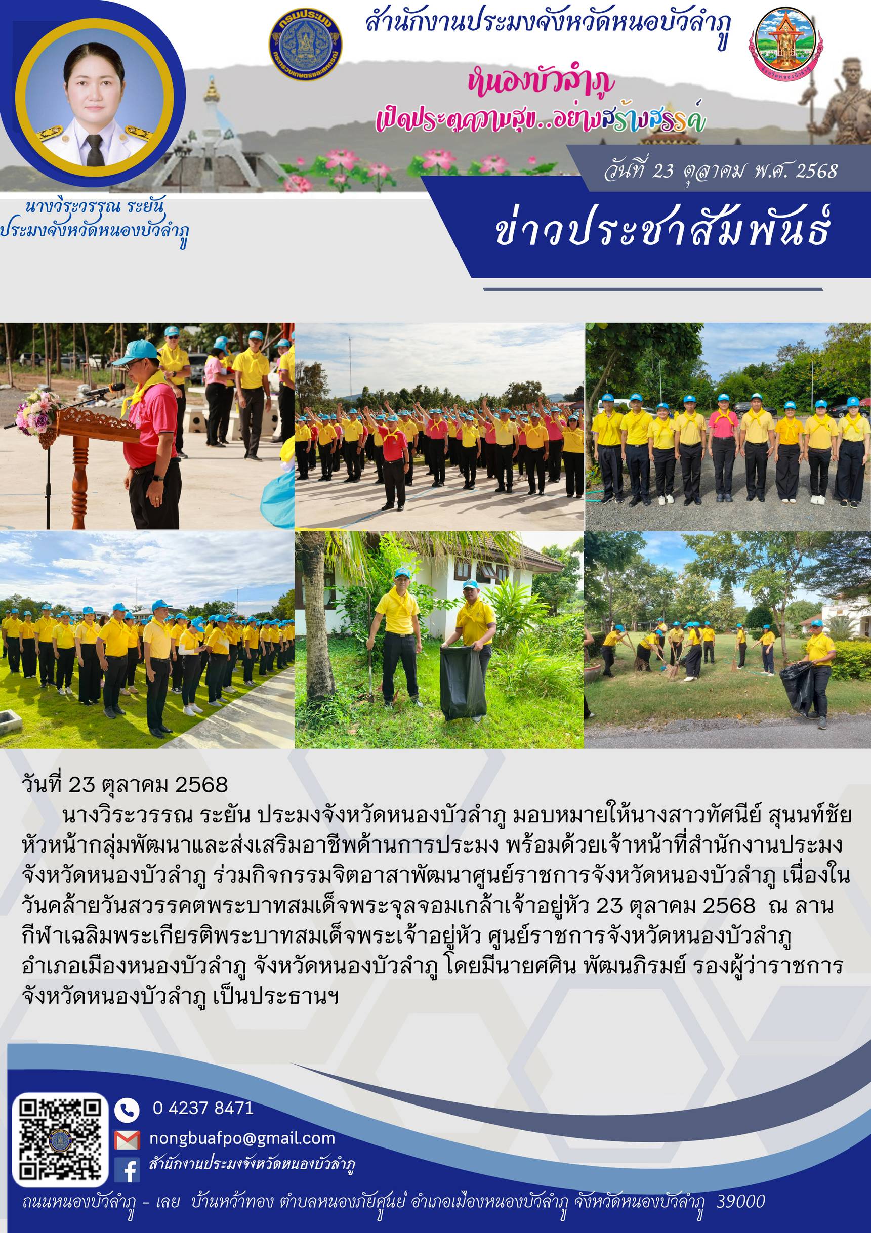 ร่วมกิจกรรมจิตอาสาพัฒนาศูนย์ราชการจังหวัดหนองบัวลำภู เนื่องในวันคล้ายวันสวรรคตพระบาทสมเด็จพระจุลจอมเกล้าเจ้าอยู่หัว 23 ตุลาคม 2568