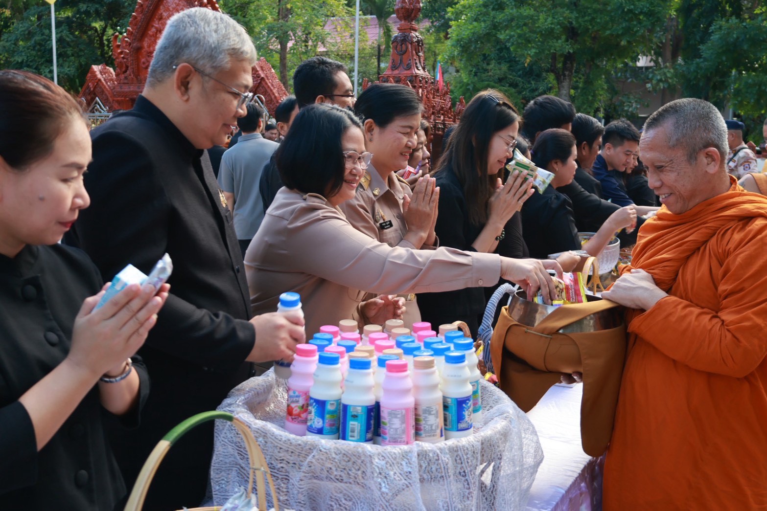 ร่วมพิธีสวดพระพุทธมนต์ และทำบุญตักบาตรพระสงฆ์ 33 รูป เพื่ออุทิศถวายเป็นพระราชกุศลแด่สมเด็จพระนางเจ้าสิริกิติ์ พระบรมราชินีนาถ พระบรมราชชนนีพันปีหลวง