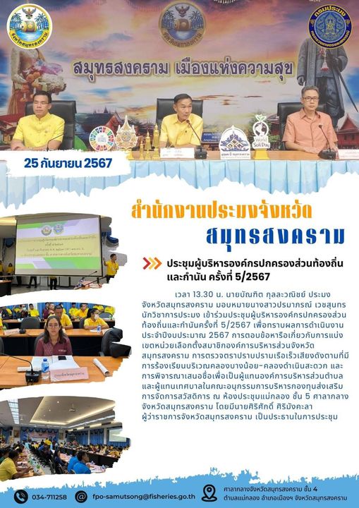 [2025-10-21] กรมประมงออกประกาศฉบับใหม่ ยกระดับมาตรฐานด้านสุขอนามัยในเรือประมง รองรั.. [2025-09-26] รายงานผลการดำเนินการตามนโยบาย No gift Policy จากการปฎิบัติหน้าที่.. [2025-09-26] แบบสรุปรายงานการรับทรัพย์สินหรือประโยชน์อื่นใดอันอาจคำนวณเป็นเงินได้.. [2025-09-22] Samutsongkhram Province's No - Gift Policy commitment "lntegrous and T.. [2025-09-22] ประกาศเจตนารมณ์ เรื่อง "สุจริต โปร่งใส จังหวัดสมุทรสงคราม ใสสะอาด 2568.. [2025-06-23] เปิดรับสมัครเกษตรกรผู้เพาะเลี้ยงสัตว์น้ำที่ต้องการขอรับการสนับสนุนปัจจ.. [2025-06-06] ประกาศสำนักงานประมงจังหวัดสมุทรสงคราม เรื่อง รายชื่อเกษตรกรผู้เพาะเลี.. [2025-05-15] ประกาศกรมประมง เรื่อง ขอให้เกษตรกรผู้เพาะเลี้ยงสัตว์น้ำที่ต้องการขอรับ.. [2025-05-15] เปิดรับซื้อปลาหมอคางดำ โครงการควบคุมและกำจัดปลาหมอค่งดำอย่างต่อเนื่อง.. [2025-05-01] ประกาศสำนักงานประมงจังหวัดสมุทรสงคราม เรื่อง ประกาศรายชื่อผู้ที่ได้รับ.. อ่านทั้งหมด
