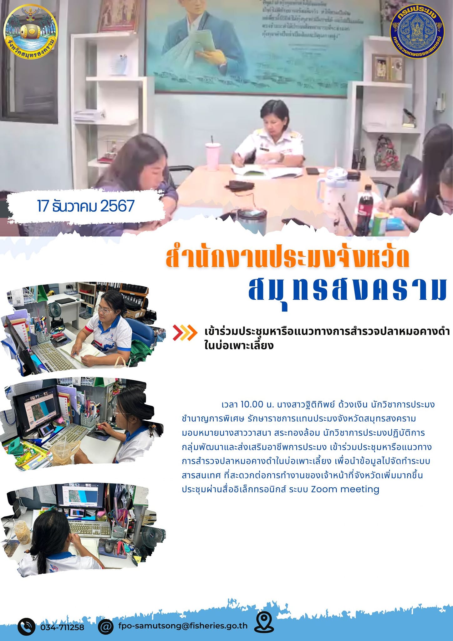 เวลา 10.00 น. นางสาวฐิติทิพย์? ด้วงเงิน? นักวิชาการประมงชำนาญการพิเศษ? รักษาราชการเเทนประมงจังหวัดสมุทรสงคราม