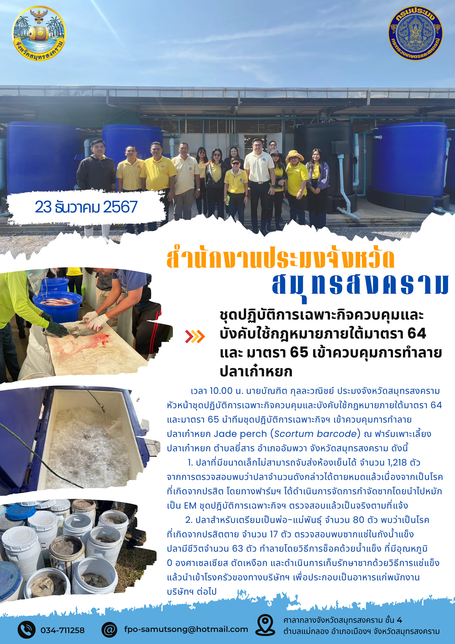 ชุดปฏิบัติการเฉพาะกิจควบคุมและ บังคับใช้กฎหมายภายใต้มาตรา 64 และ มาตรา 65 เข้าควบคุมการทำลาย ปลาเก๋าหยก