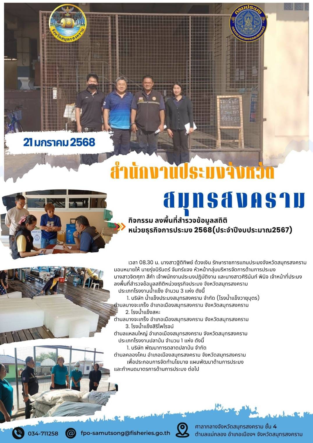 ลงพื้นที่สำรวจข้อมูลสถิติหน่วยธุรกิจประมง จังหวัดสมุทรสงคราม