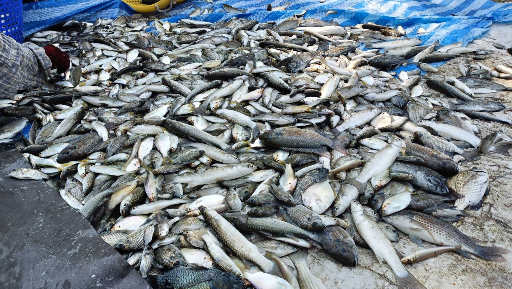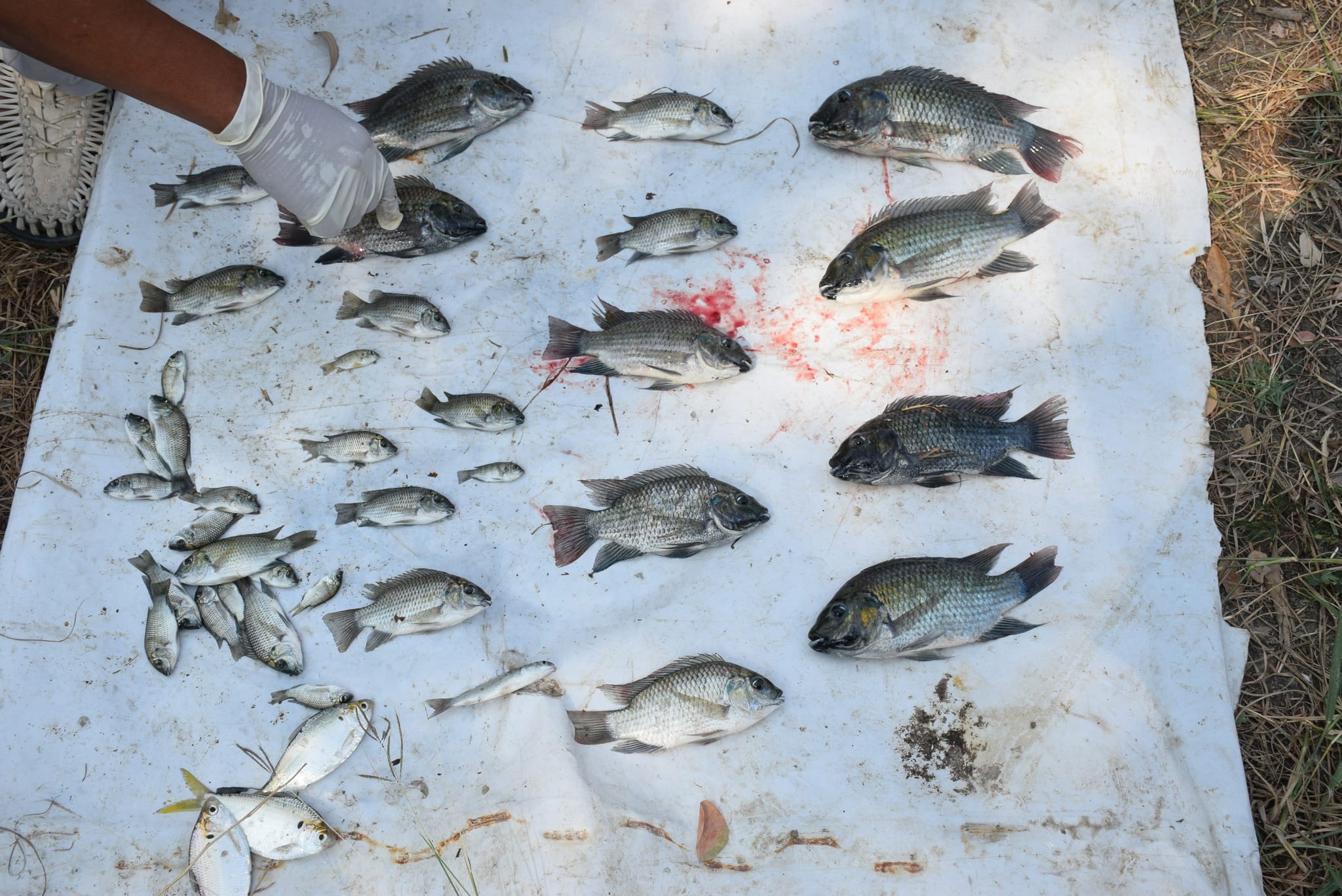 ลงพื้นที่ติดตามผลการจับสัตว์น้ำในบ่อเลี้ยงสัตว์น้ำที่ได้รับผลกระทบจากการแพร่ระบาดของปลาหมอคางดำ