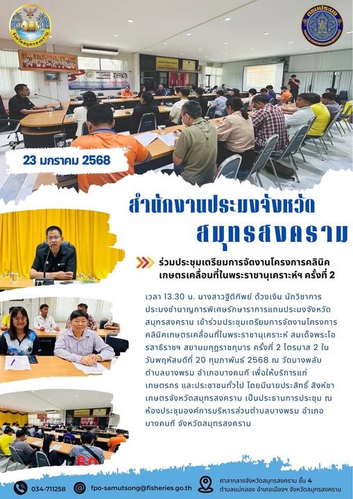[2025-10-21] กรมประมงออกประกาศฉบับใหม่ ยกระดับมาตรฐานด้านสุขอนามัยในเรือประมง รองรั.. [2025-09-26] รายงานผลการดำเนินการตามนโยบาย No gift Policy จากการปฎิบัติหน้าที่.. [2025-09-26] แบบสรุปรายงานการรับทรัพย์สินหรือประโยชน์อื่นใดอันอาจคำนวณเป็นเงินได้.. [2025-09-22] Samutsongkhram Province's No - Gift Policy commitment "lntegrous and T.. [2025-09-22] ประกาศเจตนารมณ์ เรื่อง "สุจริต โปร่งใส จังหวัดสมุทรสงคราม ใสสะอาด 2568.. [2025-06-23] เปิดรับสมัครเกษตรกรผู้เพาะเลี้ยงสัตว์น้ำที่ต้องการขอรับการสนับสนุนปัจจ.. [2025-06-06] ประกาศสำนักงานประมงจังหวัดสมุทรสงคราม เรื่อง รายชื่อเกษตรกรผู้เพาะเลี.. [2025-05-15] ประกาศกรมประมง เรื่อง ขอให้เกษตรกรผู้เพาะเลี้ยงสัตว์น้ำที่ต้องการขอรับ.. [2025-05-15] เปิดรับซื้อปลาหมอคางดำ โครงการควบคุมและกำจัดปลาหมอค่งดำอย่างต่อเนื่อง.. [2025-05-01] ประกาศสำนักงานประมงจังหวัดสมุทรสงคราม เรื่อง ประกาศรายชื่อผู้ที่ได้รับ.. อ่านทั้งหมด