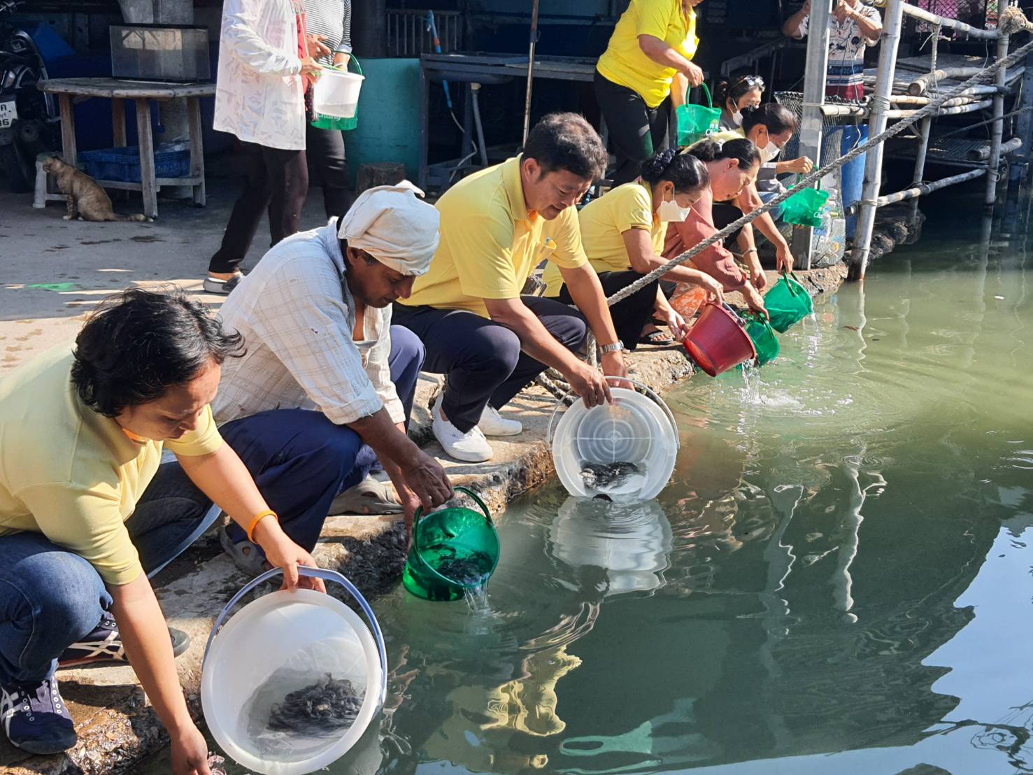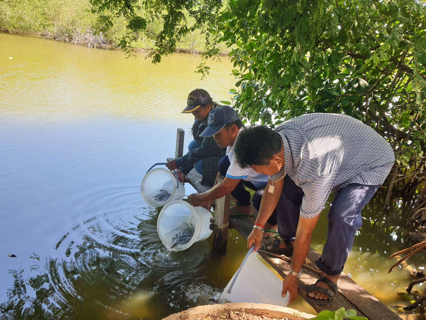 ร่วมกิจกรรมปล่อยปลาผู้ล่า (ปลากะพง) เพื่อกำจัดและควบคุมการแพร่ระบาดของปลาหมอคางดำ