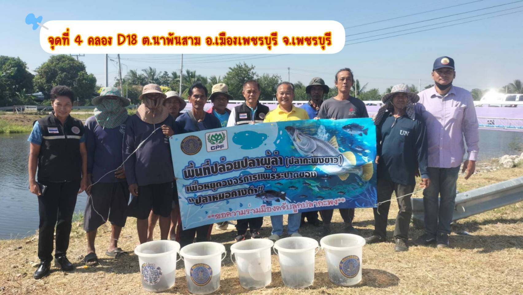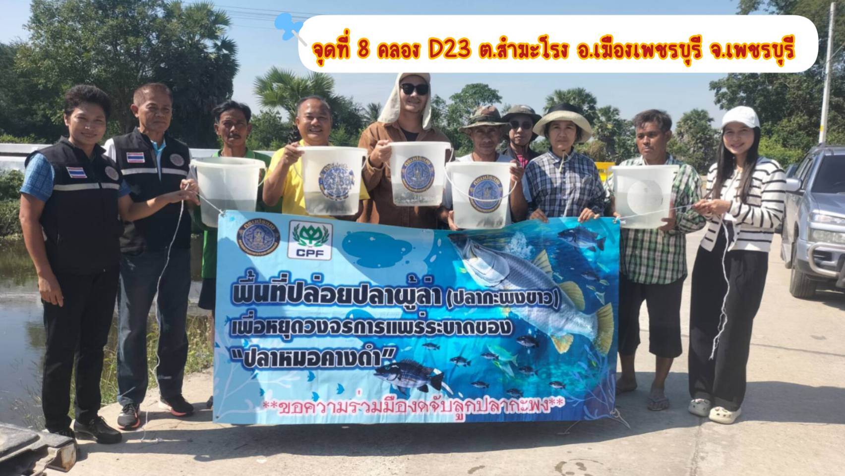 วันที่ 17 ธันวาคม 2567 เวลา 09.30 น. นายประจวบ เจี้ยงยี่ ประมงจังหวัดเพชรบุรี พร้อมด้วย ประมงอำเภอ องค์กรปกครองส่วนท้องถิ่น กำนันผู้ใหญ่บ้าน ผู้นำชุมชน และประชาชนในพื้นที่ เข้าร่วมกิจกรรมปล่อยปลาผู้ล่า (ปลากะพง) เพื่อกำจัดและควบคุมการแพร่ระบาดของปลาหมอคางดำ ตามแผนปฏิบัติการแก้ไขปัญหาการแพร่ระบาดของปลาหมอคางดำ พ.ศ. 2567-2570 มาตรการที่ 2 การกำจัดปลาหมอคางดำในแหล่งน้ำ โดยการปล่อยปลาผู้ล่าอย่างต่อเนื่อง พร้อมนี้ได้มีการประชาสัมพันธ์สร้างการรับรู้เกี่ยวกับปลาหมอคางดำให้กับชุมชนในพื้นที่ โดยได้รับการสนับสนุนพันธุ์ปลากะพงจากบริษัทเจริญโภคภัณฑ์อาหาร จำกัด (มหาชน) หรือ CPF จำนวน 5,000 ตัว โดยดำเนินการปล่อยลงแหล่งน้ำ จำนวน 10 แห่ง ดังนี้