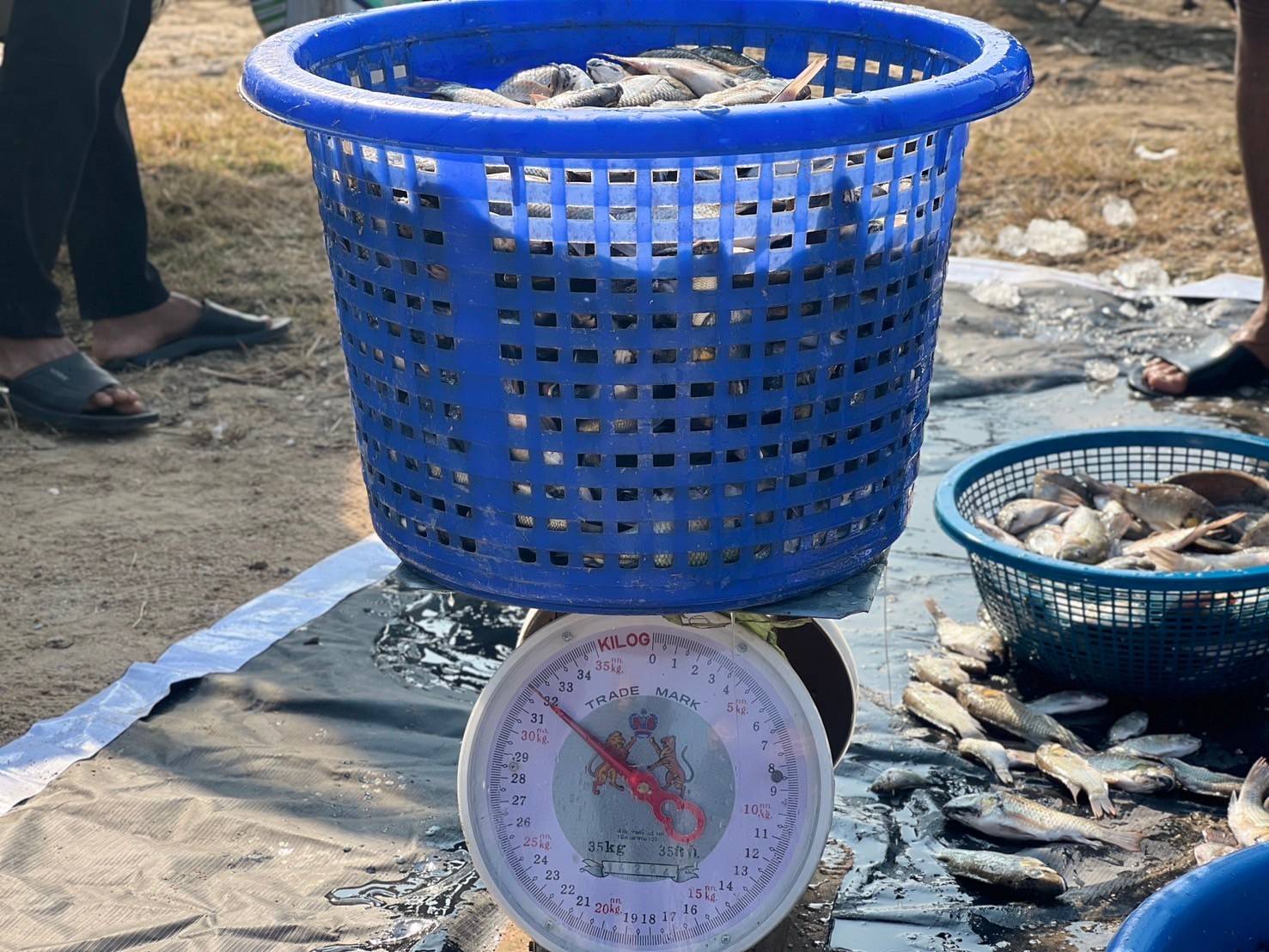 วันที่ 19 ธันวาคม 2567 เวลา 09.30 น. นายประจวบ เจี้ยงยี่ ประมงจังหวัดเพชรบุรี เป็นประธานเปิดกิจกรรมลงแขกลงคลองกำจัดปลาหมอคางดำในพื้นที่จังหวัดเพชรบุรี เพื่อเป็นการแก้ไขปัญหาการแพร่ระบาดของปลาหมอคางดำ และเน้นการมีส่วนร่วมของชุมชนในการบริหารจัดการทรัพยากรสัตว์น้ำ ตามมาตรการที่ 1 การควบคุมและกำจัดปลาหมอคางดำในแหล่งน้ำธรรมชาติทุกแห่งที่พบการแพร่ระบาด ภายใต้แผนปฏิบัติการแก้ไขปัญหาการแพร่ระบาดของปลาหมอคางดำ พ.ศ. 2567-2570 โดยมีหัวหน้าส่วนราชการสังกัดกรมประมง เรือนจำกลางเพชรบุรี เจ้าหน้าที่กรมประมง ผู้แทนองค์กรปกครองส่วนท้องถิ่น กำนัน ผู้ใหญ่บ้าน ผู้นำชุมชน องค์กรชุมชนประมงท้องถิ่น ผู้แทนบริษัทเจริญโภคภัณฑ์อาหาร จำกัด (มหาชน) หรือ CPF อาสาสมัครกำจัดปลาหมอคางดำ เครือข่ายชุมชน ชาวประมง ประชาชนในพื้นที่ และสื่อมวลชน เข้าร่วมกิจกรรมลงแขกลงคลองกำจัดปลาหมอคางดำ โดยใช้เครื่องมือประมงประเภทอวน ข่าย และแห ณ บริเวณคลอง D23 (ร่องใหญ่) หมู่ 7 และคลองบางแก้ว (บนดอน) หมู่ 4 ตำบลบางแก้ว อำเภอบ้านแหลม จังหวัดเพชรบุรี และพื้นที่ติดต่อตำบลโพพระ อำเภอเมืองเพชรบุรี จังหวัดเพชรบุรี มีผู้เข้าร่วมกิจกรรมจำนวน 150 คน ผลการดำเนินการจับปลาหมอคางดำได้ จำนวน 152 กิโลกรัม และได้ส่งมอบปลาหมอคางดำที่จับได้ให้กับเรือนจำกลางเพชรบุรี เพื่อนำไปใช้ประโยชน์ผลิตเป็นน้ำปลาในสวัสดิการของเรือนจำกลางเพชรบุรีต่อไป