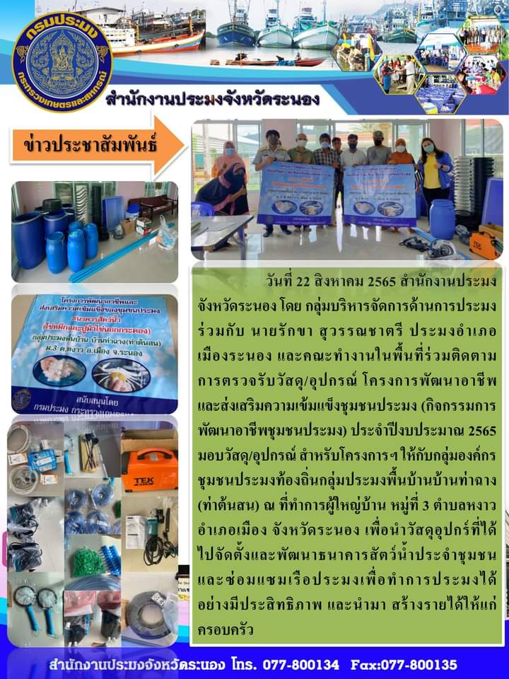 โครงการพัฒนาอาชีพและส่งเสริมความเข้มแข็งชุมชนประมง (กิจกรรมการพัฒนาอาชีพชุมชนประมง) ประจำปีงบประมาณ 2565