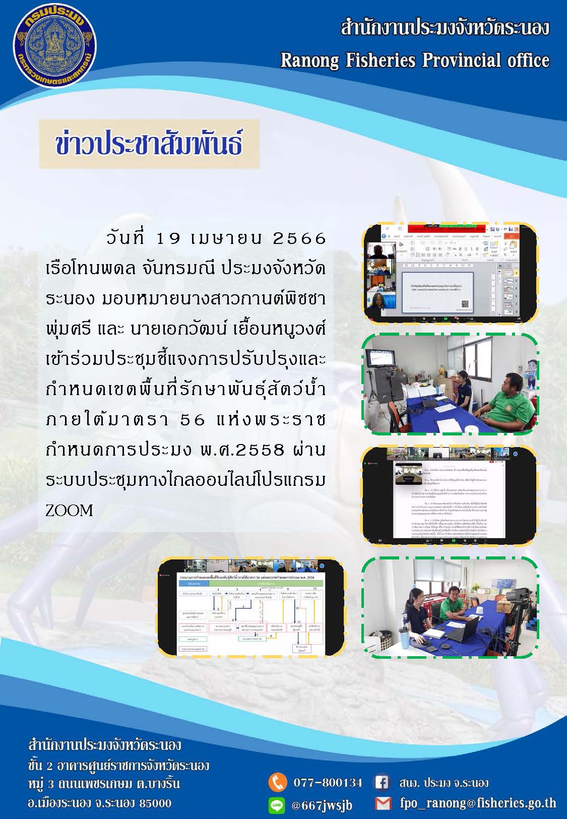 ประชุมชี้แจงการปรับปรุงและกำหนดเขตพื้นที่รักษาพันธุ์สัตว์น้ำ ม.56