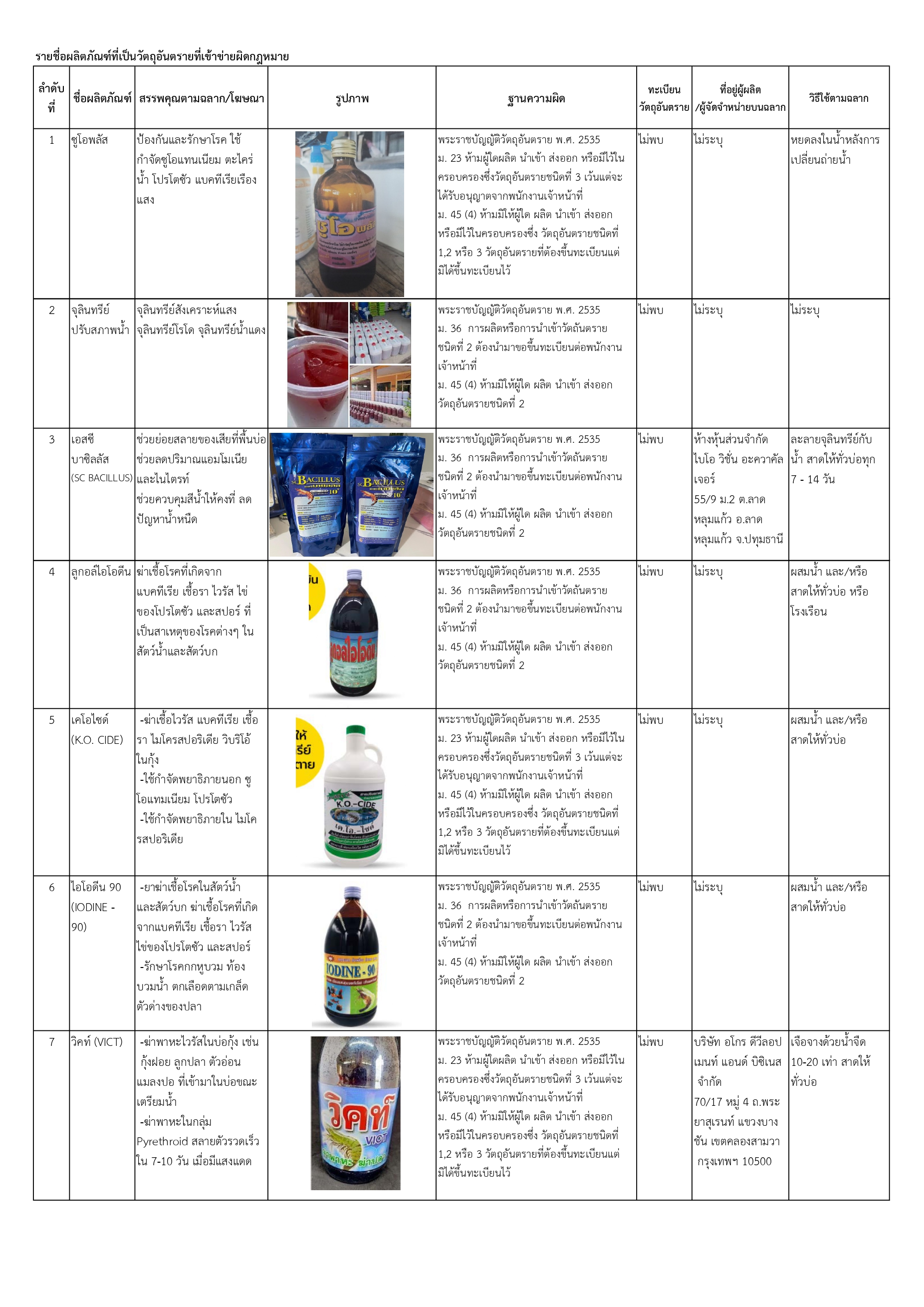 ผลติภัณฑ์ปัจจัยการผลิตที่เข้าข่ายผิดกฎหมาย