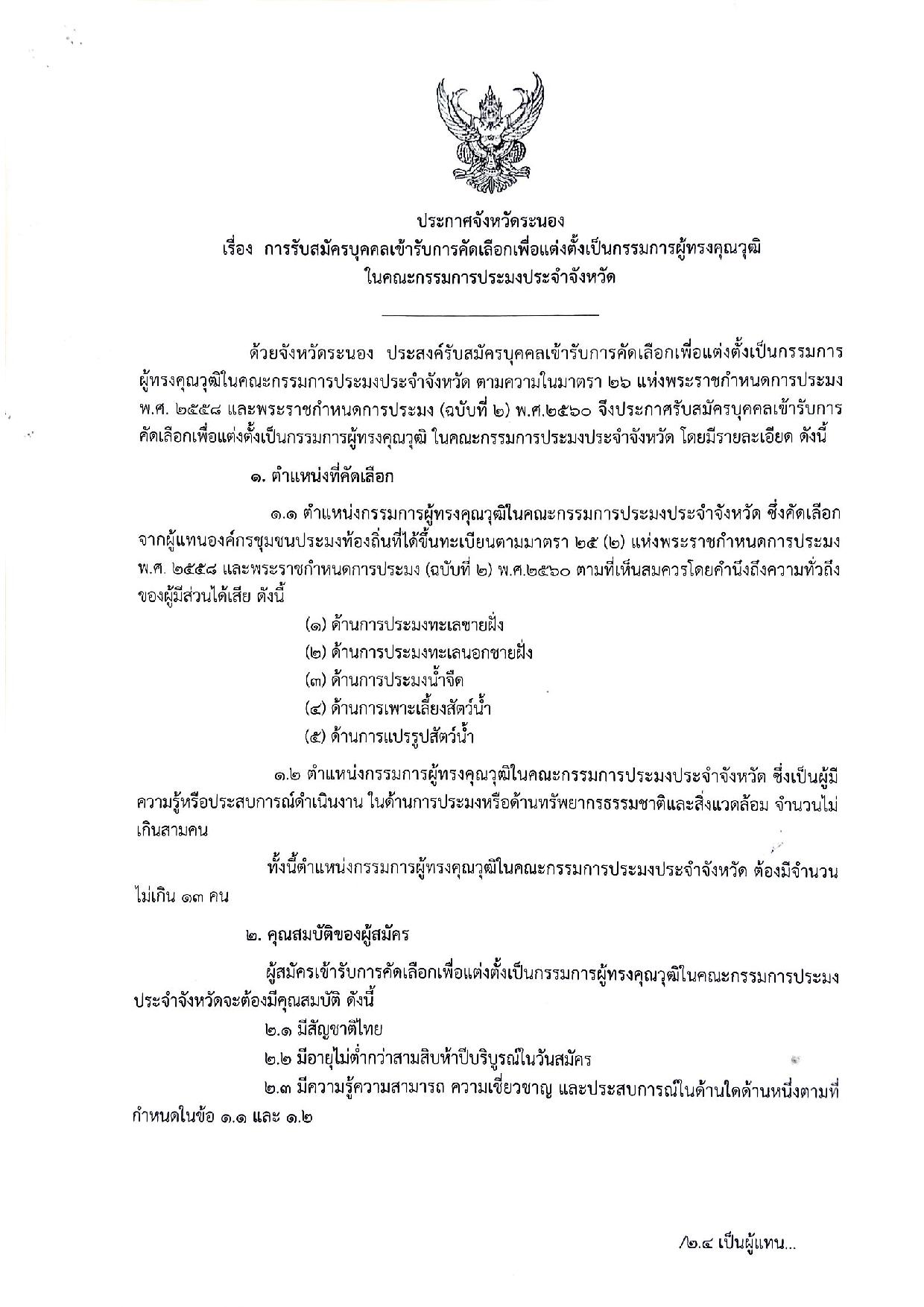 ประกาศจังหวัดระนอง เรื่อง การรับสมัครบุคคลเข้ารับการคัดเลือกเพื่อเแต่งตั้งเป็นกรรมการผู้ทรงคุณวุติ ในคณะกรรมการประมงจังหวัด