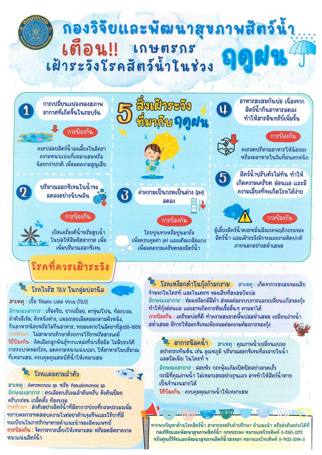 เตือน...เกษตรกรเฝ้าระวังโรคสัตว์น้ำในช่วงฤดูฝน