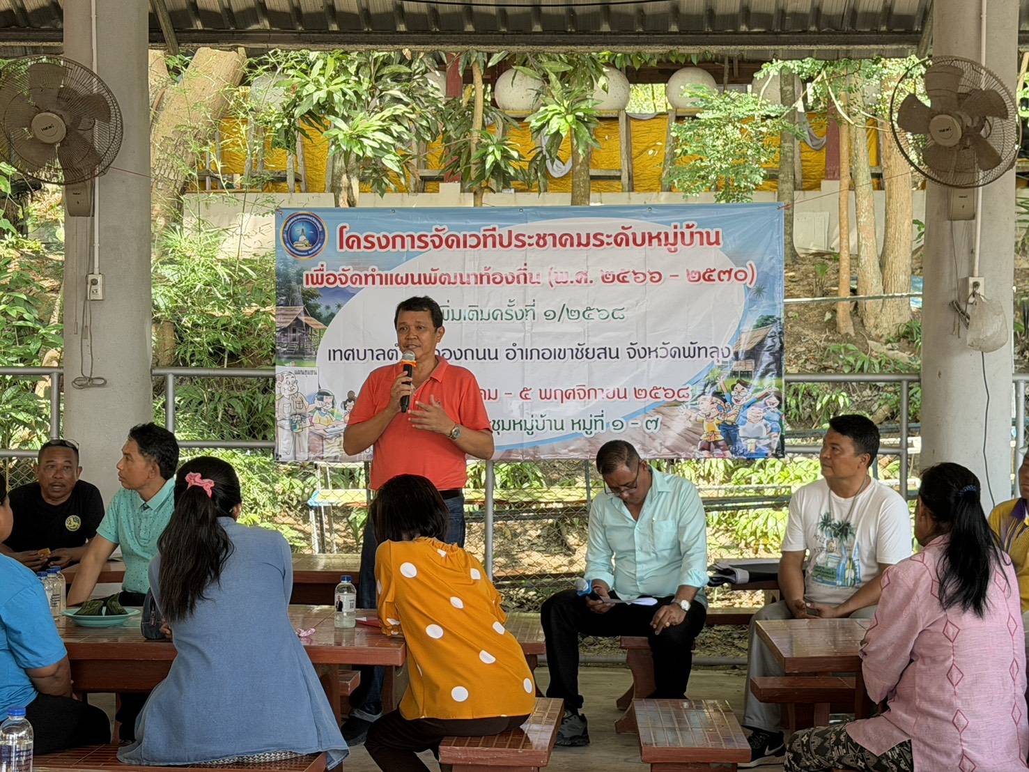 อำเภอเขาชัยสน วันที่ 15 ตุลาคม 2568 เวลา 09.30 น. นายภูษิต จันทร์เพชร ประมงจังหวัดพัทลุง มอบหมายให้ นายถาวร รุกขสุคนธ์ ประมงอำเภอเขาชัยสน นายอดิเรก กาฬสิงห์ ประมงอำเภอควนขนุน นางสาวทิพากร สุขพล ประมงอำเภอบางแก้ว และ นางสาวช่อผกา มิลำเอียง เจ้าหน้าที่บันทึกข้อมูล รับขึ้นทะเบียนผู้ทำการประมง พื้นที่หมู่ที่ 1 ตำบลจองถนน. อำเภอเขาชัยสน และมอบป้ายห้ามจับสัตว์น้ำในเขตรักษาพันธ์สัตว์น้ำอ่าวจงเก หมู่ที่ 1,3 ตำบลจองถนน