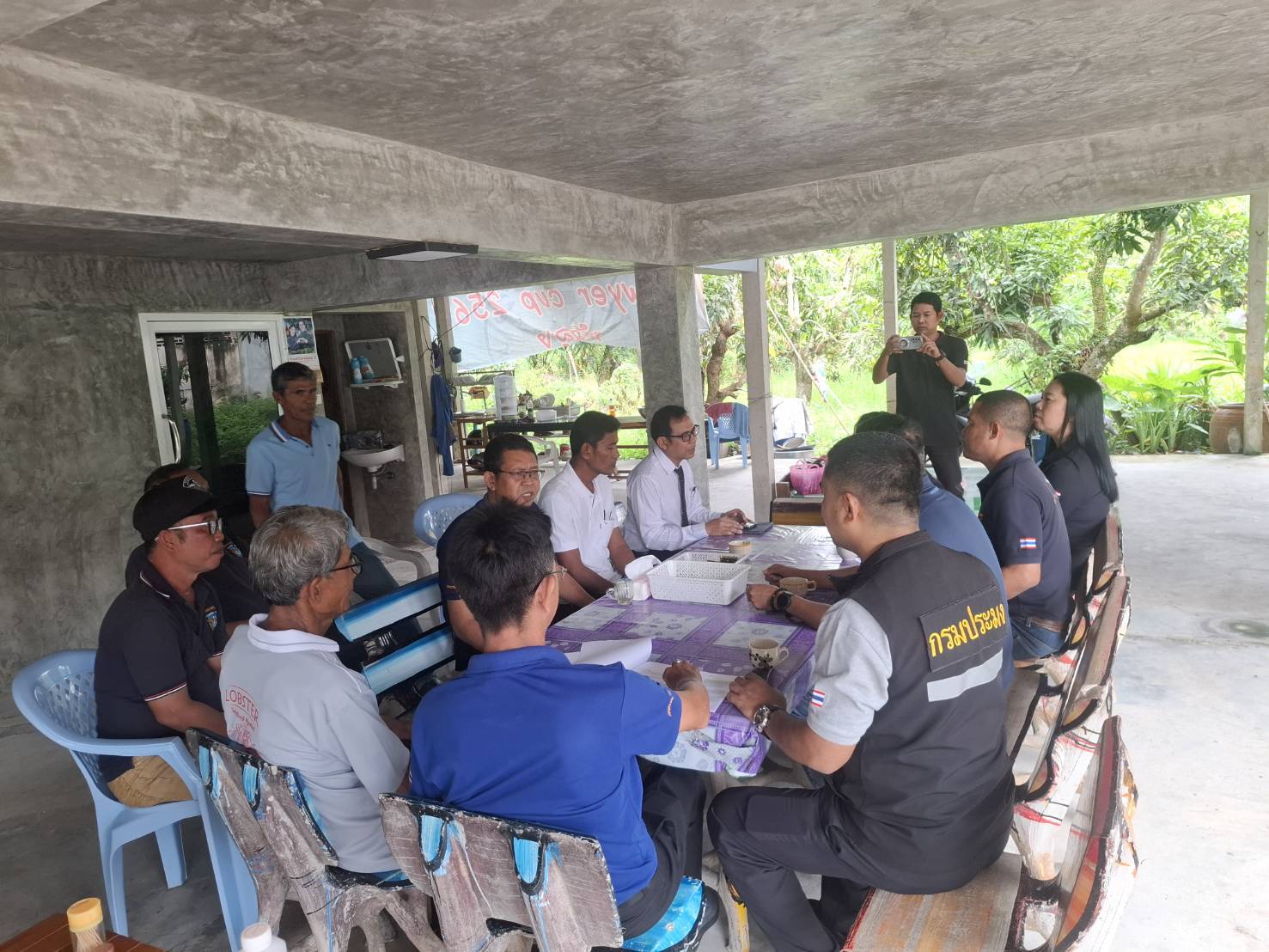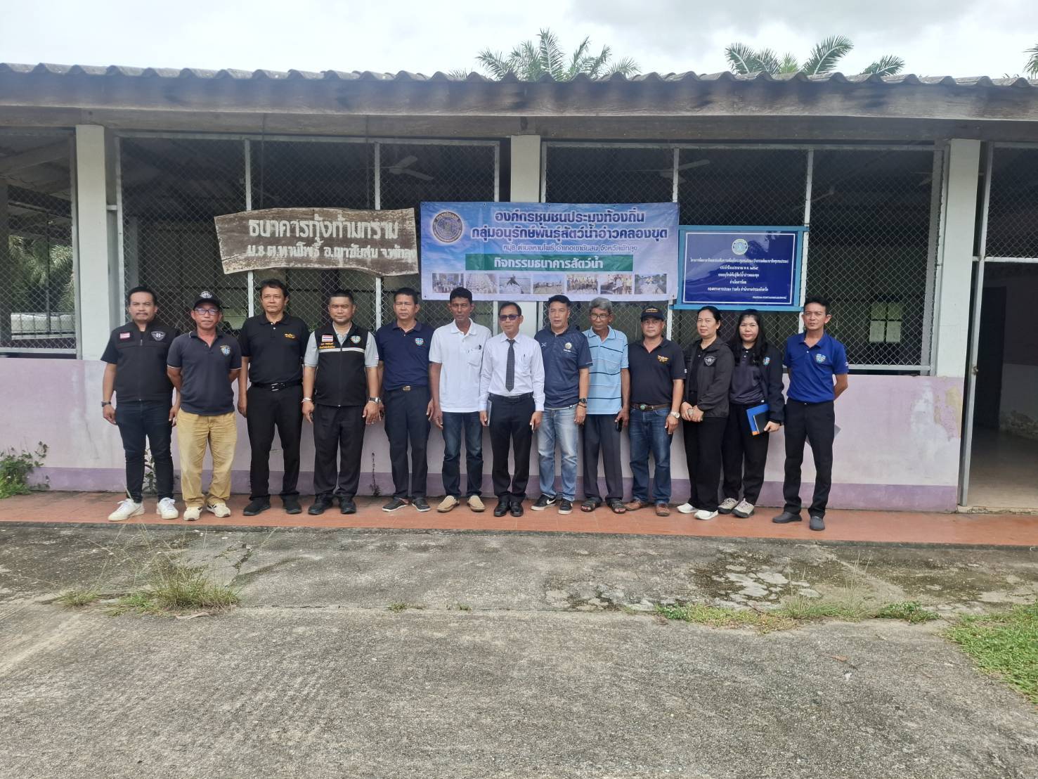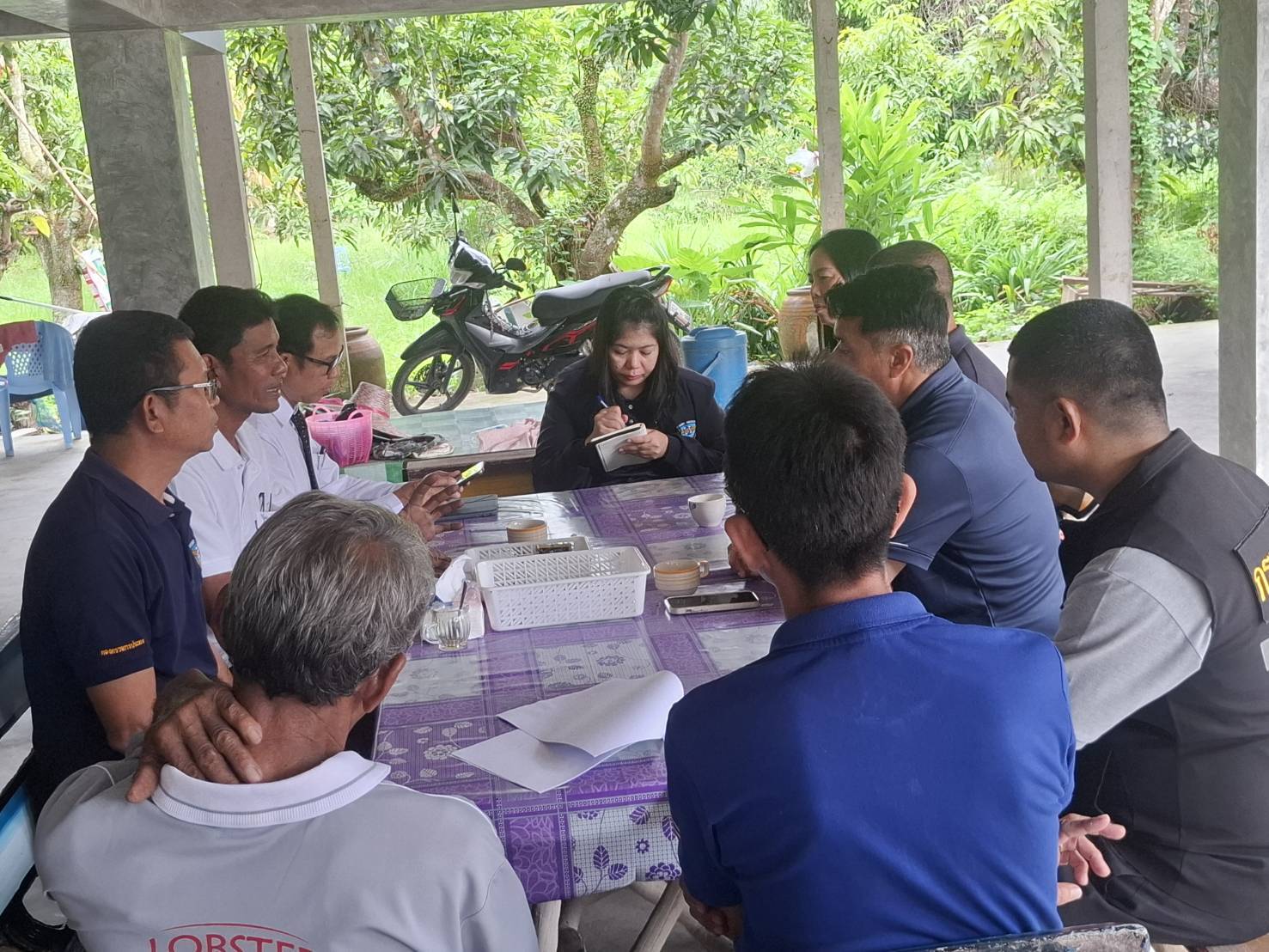 ประมงจังหวัดพัทลุง พร้อมด้วย ประมงอำเภอเขาชัยสน เจ้าหน้าที่หน่วยป้องกันและปราบปรามฯ พัทลุง ผู้อำนวยการศูนย์ป้องกันและปราบปรามประมงน้ำจืดสุราษฎร์ธานี หัวหน้ากลุ่มส่งเสริมการมีส่วนร่วมด้านการประมงพร้อมคณะ เข้าพบผู้นำ/สมาชิกกลุ่มเขตอนุรักษ์พันธุ์สัตวน้ำอ่าวคลองขุด ม.8 ต.หานโพธิ์ อ.เขาชัยสน จ.พัทลุง ในการตรวจเยี่ยมชุมชน-ฟาร์มชุมชุม (ธนาคารกุ้งก้ามกราม)