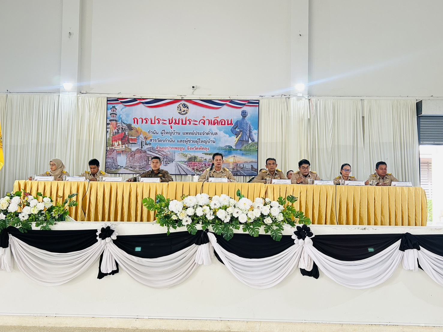 ประมงอำเภอปากพะยูน เข้าร่วมประชุมกำนัน/ผู้ใหญ่บ้านฯ ครั้งที่ 11/2568 ประจำเดือนพฤศจิกายน 2568 เพื่อชี้แจง ข้อราชการ ด้านประมง เรื่องการเตรียมรับสถานการณ์อุทกภัย การขึ้นทะเบียนและต่ออายุทะเบียนผู้เพาะเลี้ยงสัตว์น้ำ การขึ้นทะเบียนและต่ออายุทะเบียนผู้ทำการประมง ณ ศาลาประชาคมอำเภอปากพะยูน