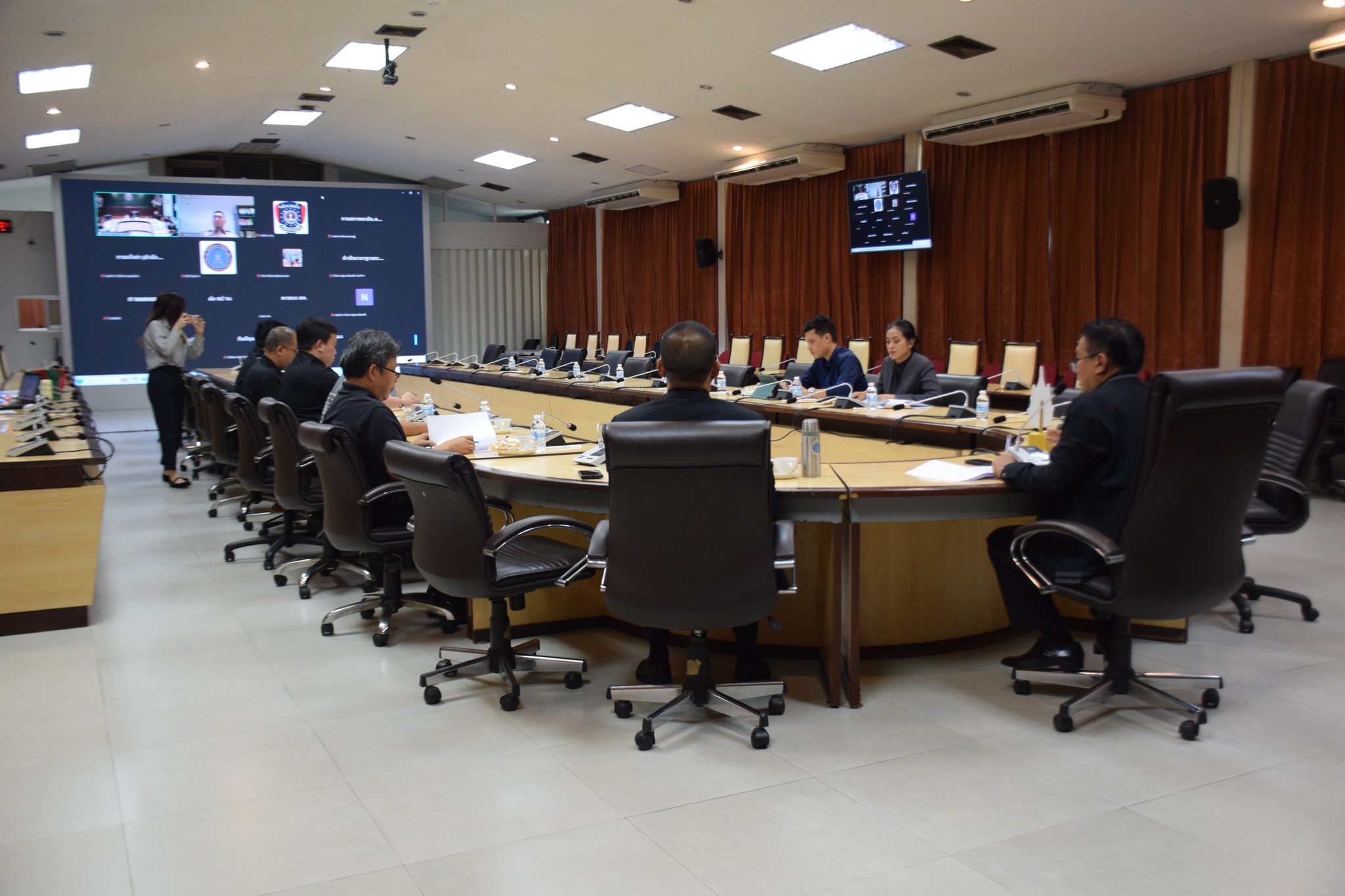 นายประเทศ ซอรักษ์ รองอธิบดีกรมประมง พร้อมด้วยนายสุวัฐน์ วงศ์สุวัฒน์ รองอธิบดีกรมประมง ประชุมร่วมกับผู้แทนจากกองทัพเรือ สำนักงานตำรวจแห่งชาติ กองบังคับการตำรวจน้ำ กรมเจ้าท่า กรมศุลกากร กรมสรรพสามิต กรมธุรกิจพลังงาน และหน่วยงานในสังกัดกรมประมงที่เกี่ยวข้อง เพื่อร่วมพิจารณาหารือถึงการแบ่งปันความร่วมมือในการติดตาม ควบคุม และเฝ้าระวังเรือสนับสนุนการประมง เพื่อต่อต้านการทำประมงผิดกฎหมาย ขาดการรายงาน และไร้การควบคุม (IUU Fishing) โดยบูรณาการประสานงานระหว่างกรมประมงและหน่วยงานต่างๆ เพื่อสร้างกลไกในการติดตาม ควบคุม เฝ้าระวังอย่างมีประสิทธิภาพและทันสมัย รวมถึงการใช้เทคโนโลยีใหม่เป็นช่องทางในการติดตามเรือสนับสนุนการประมงได้มากขึ้นด้วย