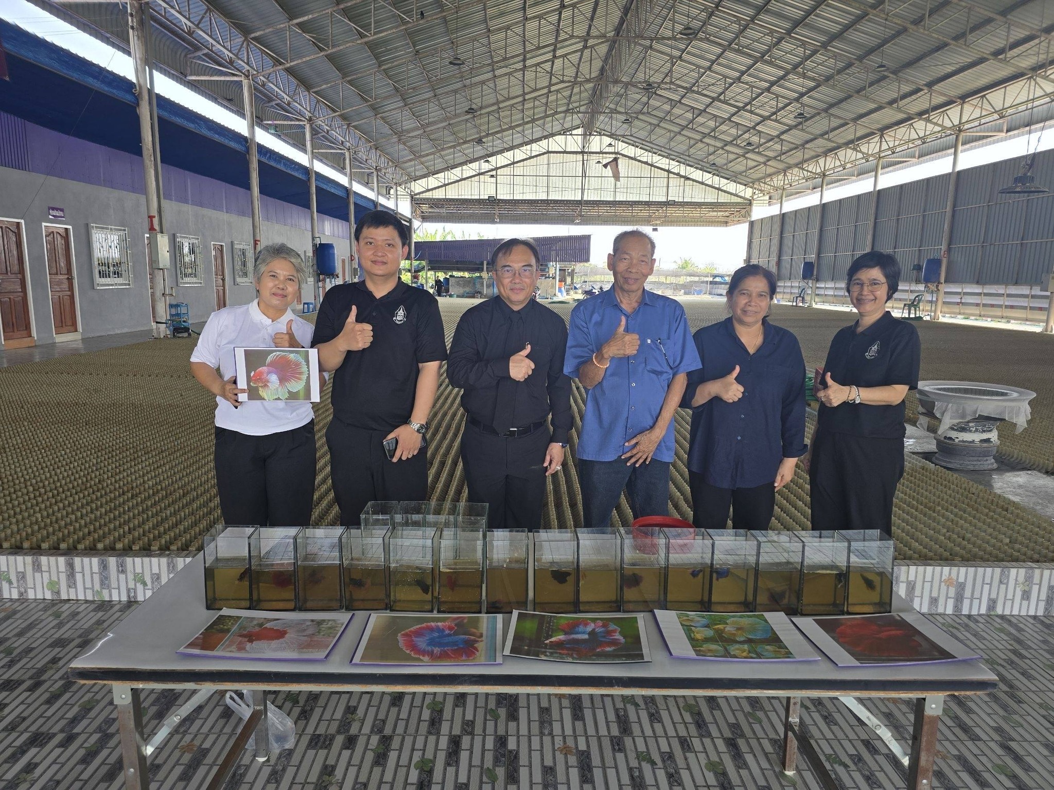 จากนั้น รองอธิบดีฯ และคณะได้เดินทางไปยัง ลุงหนูป้าลักษณ์ปลากัดฟาร์ม อำเภอนครชัยศรี จังหวัดนครปฐม ซึ่งเป็นฟาร์มที่ได้รับการขึ้นทะเบียน สอ.3 และประสบความสำเร็จในการเพาะเลี้ยงปลากัดสวยงามเพื่อส่งออกไปยังต่างประเทศ อาทิ สหรัฐอเมริกา จีน อินเดีย ฯลฯ รวมถึง ได้รับรางวัลเกษตรกรดีเด่นแห่งชาติ สาขาอาชีพปลาสวยงามและพรรณไม้น้ำ ประจำปี 2565 ซึ่งนับเป็นอีกหนึ่งฟาร์มต้นแบบที่สะท้อนให้เห็นถึงศักยภาพของเกษตรกรไทยในการยกระดับการเพาะเลี้ยงสัตว์น้ำสวยงามสู่ตลาดโลก