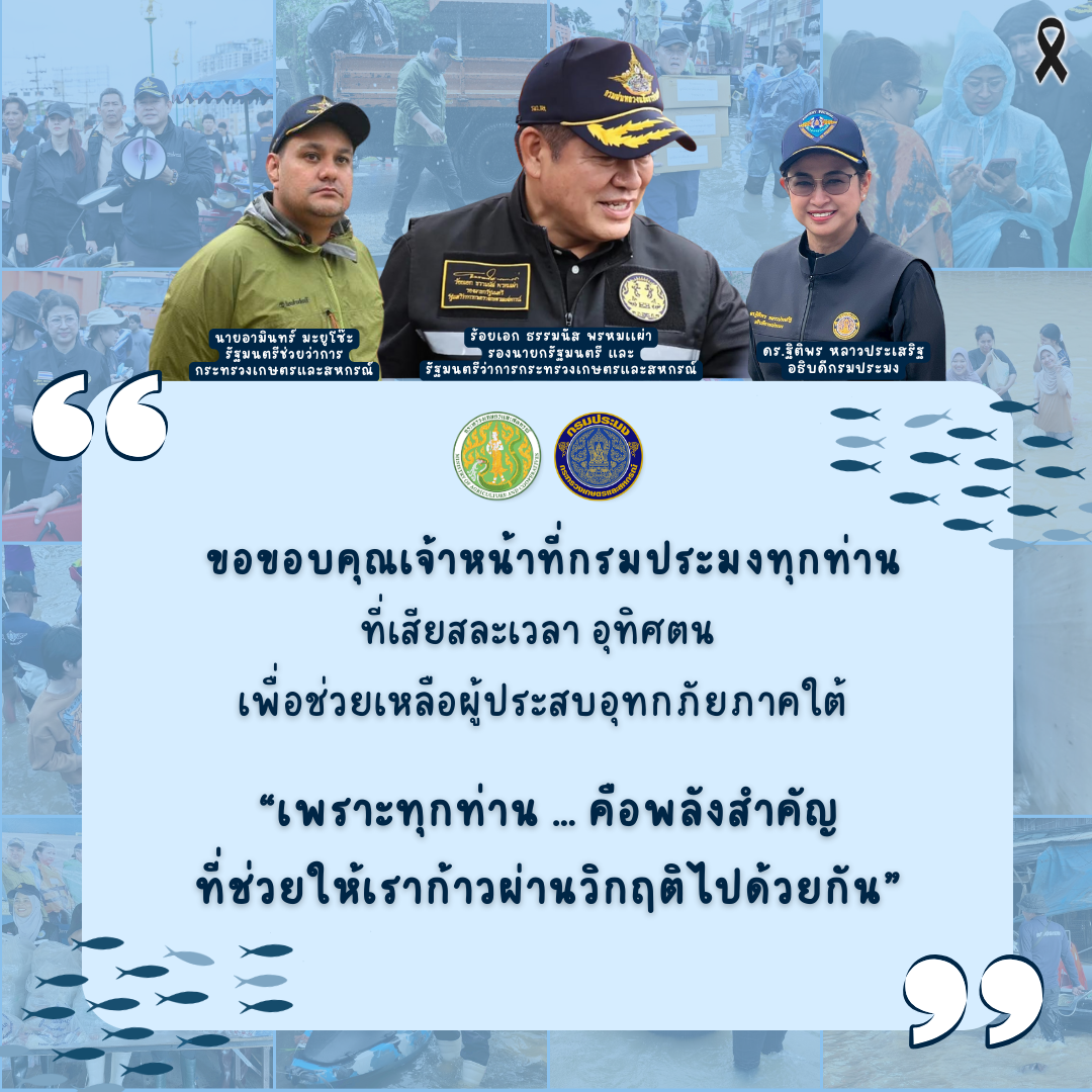 ขอขอบคุณเจ้าหน้าที่กรมประมงทุกท่าน ที่เสียสละเวลา อุทิศตน เพื่อช่วยเหลือผู้ประสบอุทกภัยภาคใต้ "เพราะทุกท่าน.....