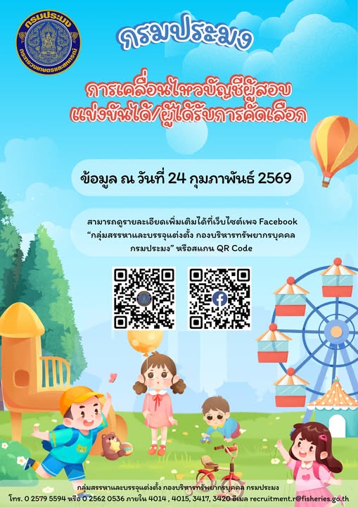 วันพุธที่ 25 กุมภาพันธ์ 2569 เวลา 13.30 น. ณ ห้องประชุมอินทรี ชั้น 4 อาคารจุฬาภรณ์ กรมประมง