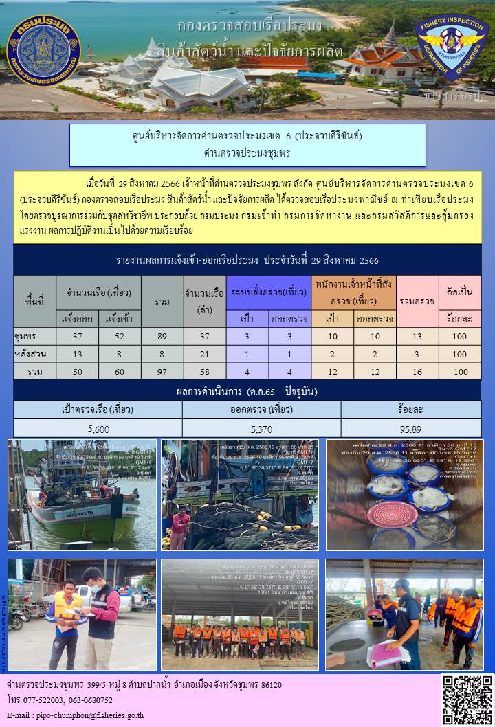 เมื่อวันที่ 29 สิงหาคม 2566 เจ้าหน้าที่ศูนย์บริหารจัดการด่านตรวจประมงเขต 6 (ประจวบคีรีขันธ์) ได้ตรวจสอบเรือประมงพาณิชย์ ณ ท่าเทียบเร..