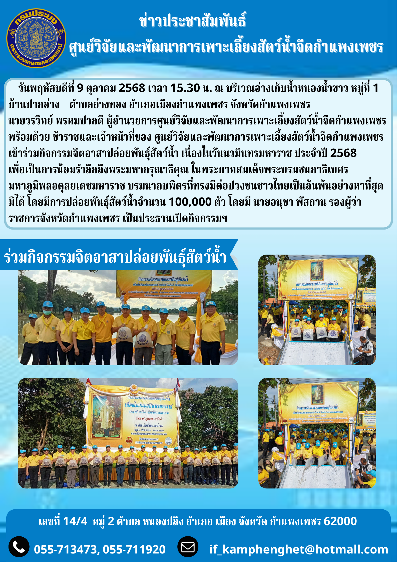 ศูนย์วิจัยและพัฒนาการเพาะเลี้ยงสัตว์น้ำจืดกำแพงเพชร