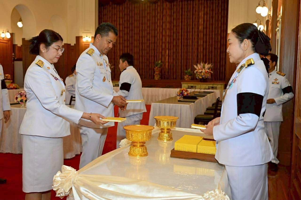 วันพฤหัสบดีที่ 1 มกราคม 2569 เวลา 15.30 น. นายวิณะโรจน์ ทรัพย์ส่งสุข ปลัดกระทรวงเกษตรและสหกรณ์ พร้อมด้วย นางฐิติพร หลาวประเสริฐ อธิบดีกรมประมง และคณะผู้บริหารระดับสูงในสังกัดกระทรวงเกษตรและสหกรณ์ นำแจกันดอกไม้ทูลเกล้าฯ ถวายเบื้องหน้าพระบรมฉายาลักษณ์ พระบาทสมเด็จพระเจ้าอยู่หัว และสมเด็จพระนางเจ้า ฯ พระบรมราชินี พร้อมลงนามถวายพระพร เนื่องในโอกาสวันขึ้นปีใหม่ พุทธศักราช 2569 ณ ศาลาสหทัยสมาคม ในพระบรมมหาราชวัง